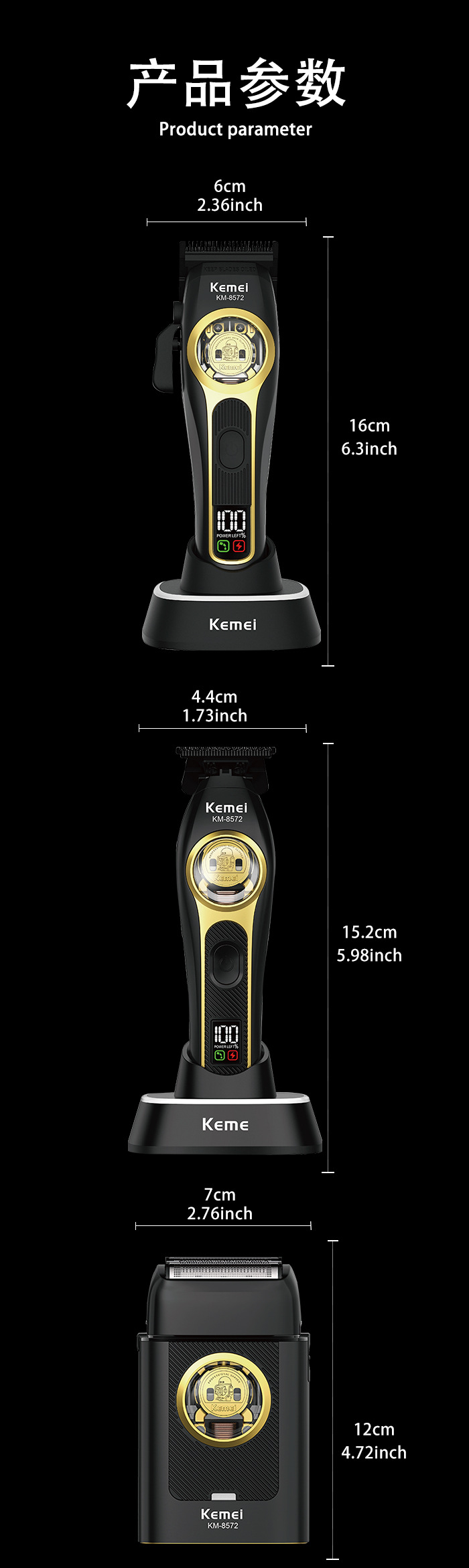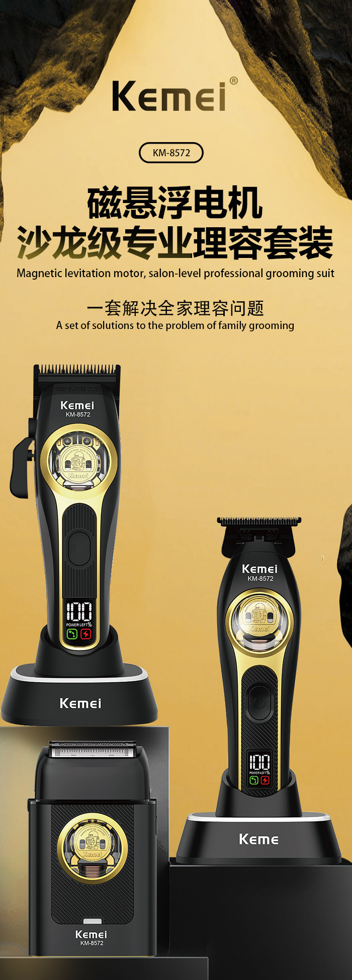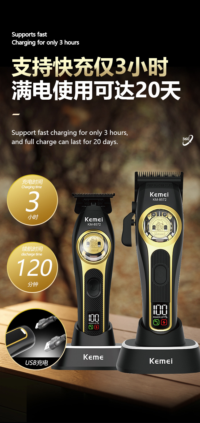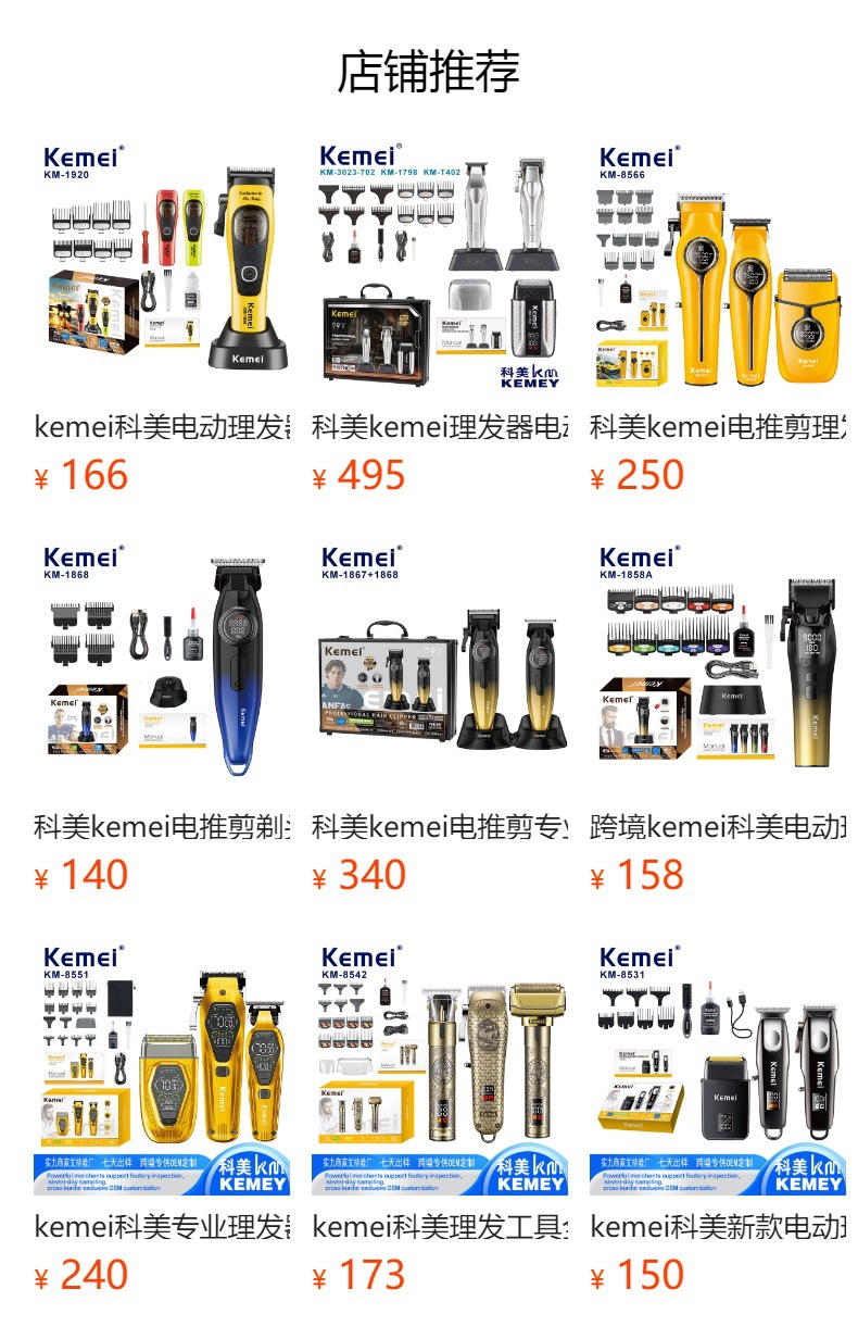 工厂定制kemei无刷电推剪专业电动理发器发廊专用三件套理发推子 English | 投诉