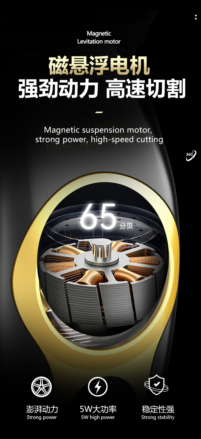 品牌: kemei科美 刀头材质: 钛合金 电源方式: 充电式 清洁方式: 清洁刷 适用人群: 通用 电机类型: 磁悬浮无刷电机 型号: KM-8572 尺寸: KM-8572(详情咨询客服) 是否有自动研磨刀头: 否 证书类型: CE 规格: Type-C 功率: 5 产地: 中国 货号: KM-8572 是否防水: 否 主要下游平台: 亚马逊,wish,速卖通,独立站,其他 主要销售地区: 欧洲,东南亚,北美,中东,其他 有可授权的自有品牌: 是 是否跨境出口专供货源: 是 是否专利货源: 否 重量: 0.625 kg/套