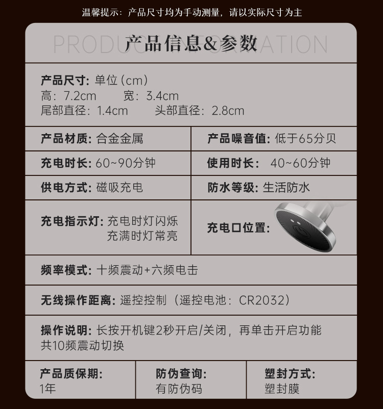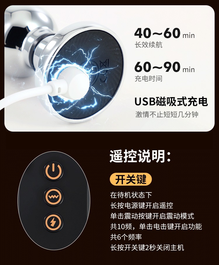 主要功能/卖点:远程遥控,多频率电击,震动