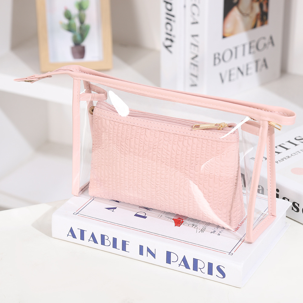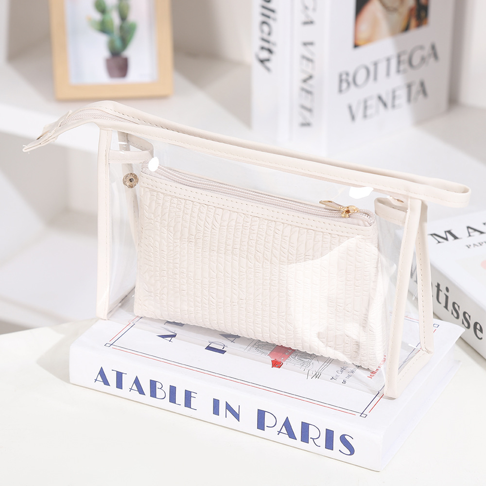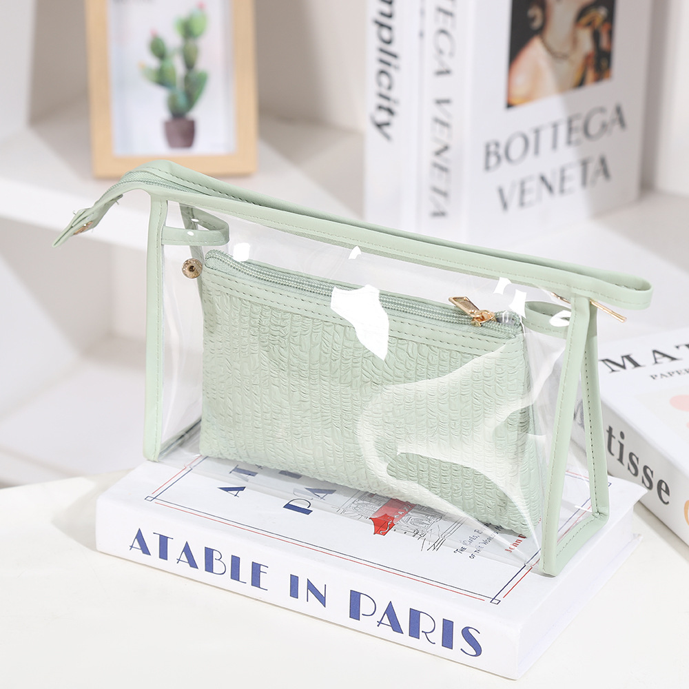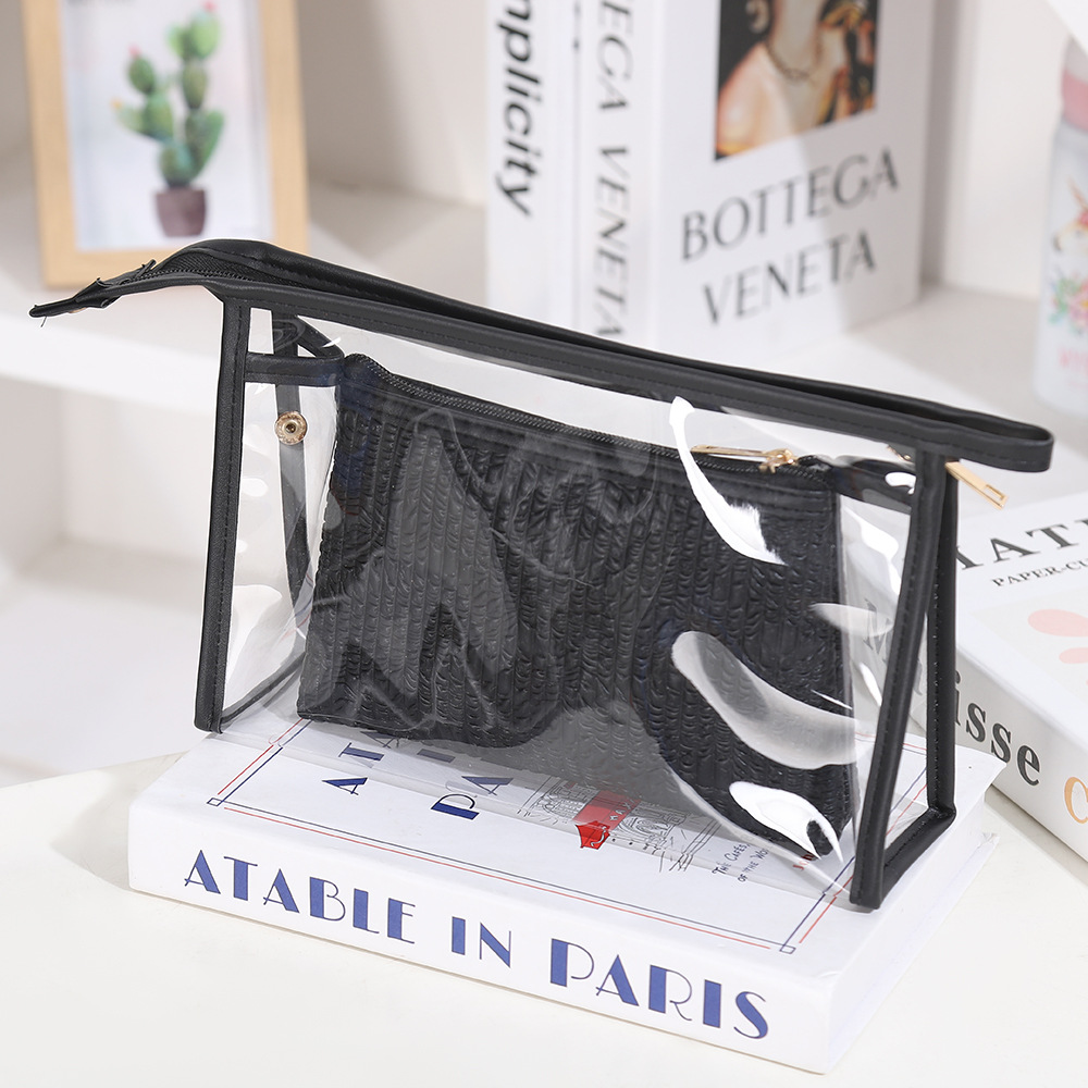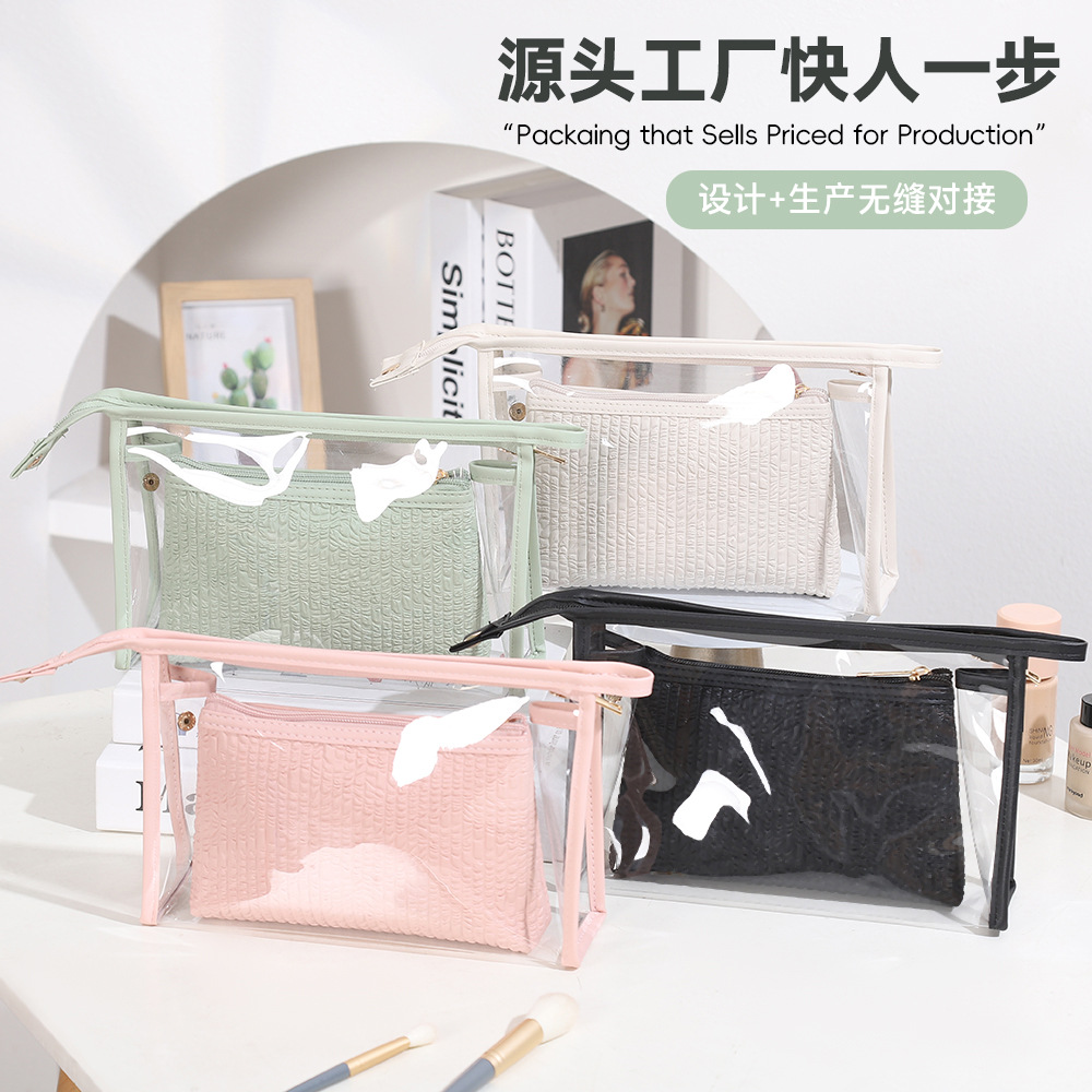 简约透明化妆包两件套女士高级感大容量收纳包防水旅游便携洗漱包