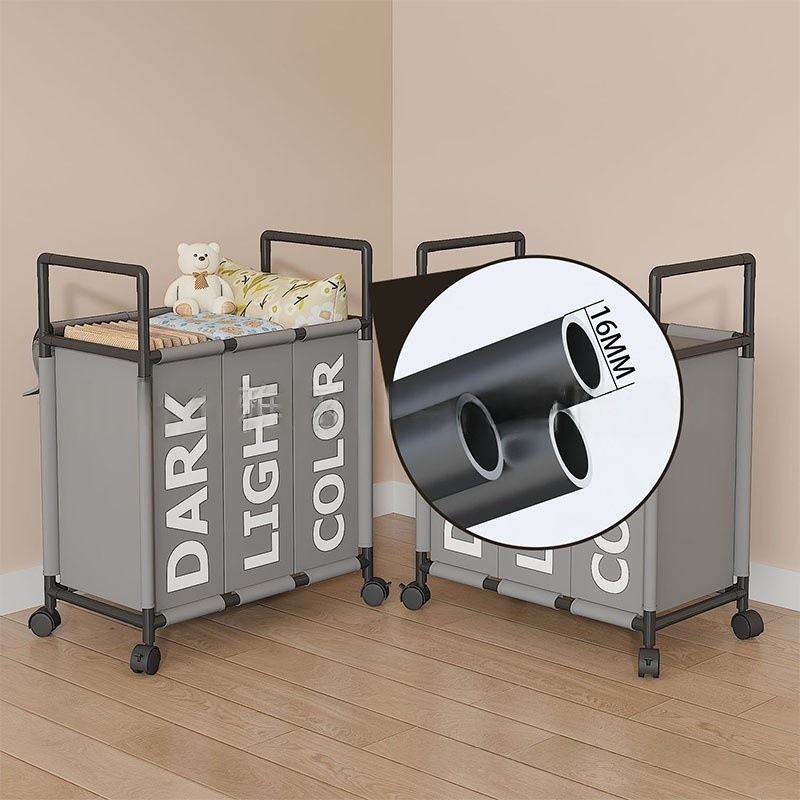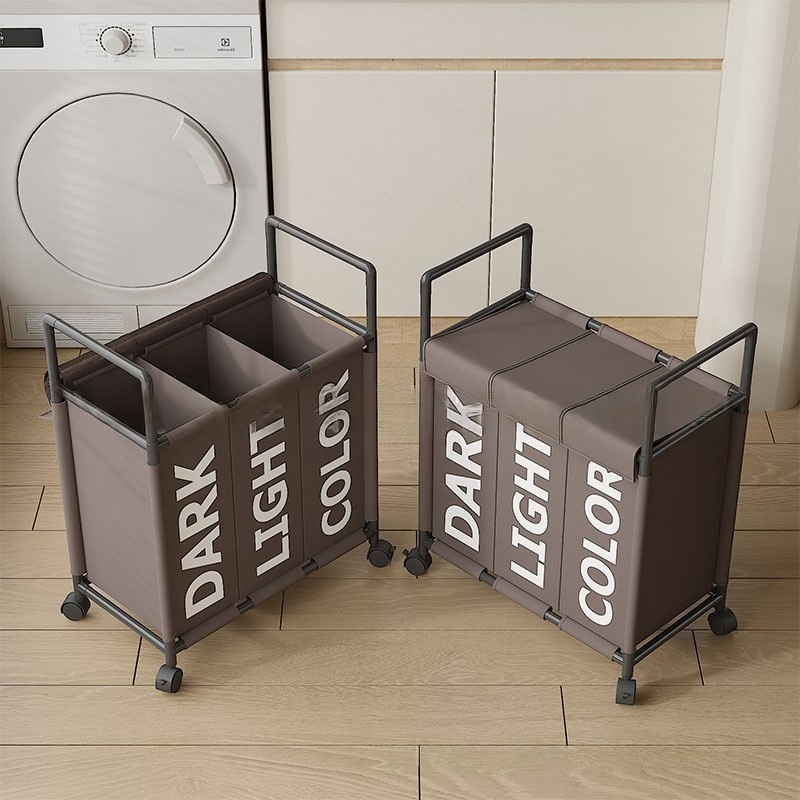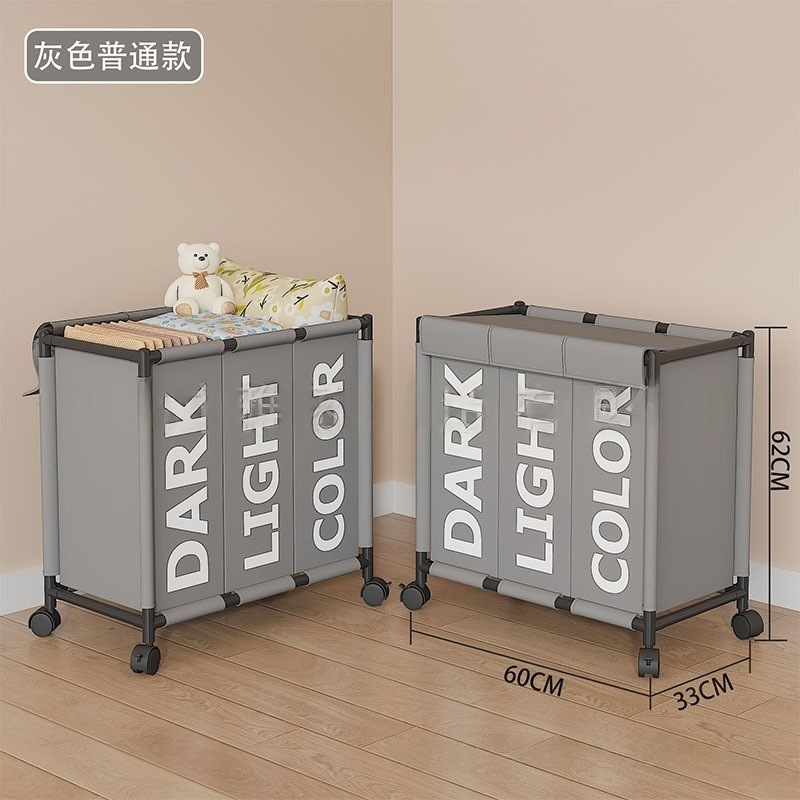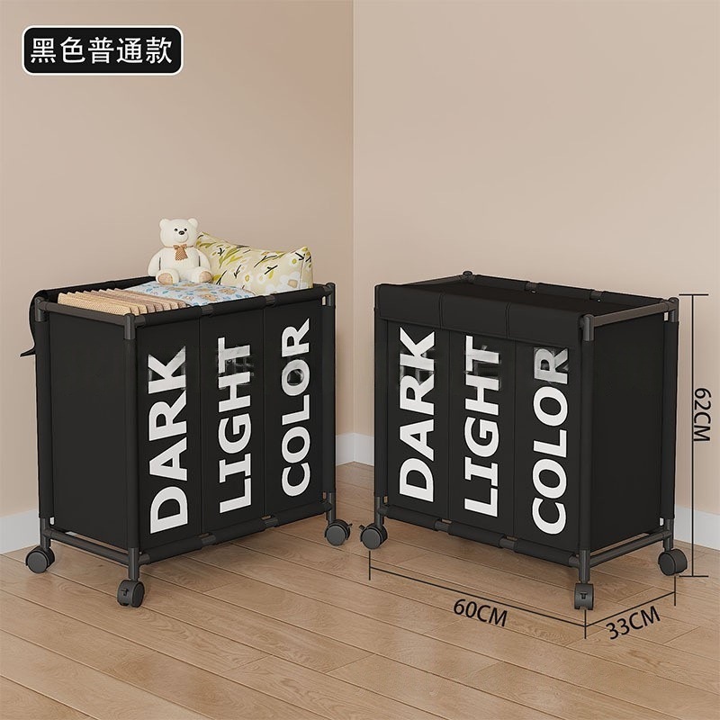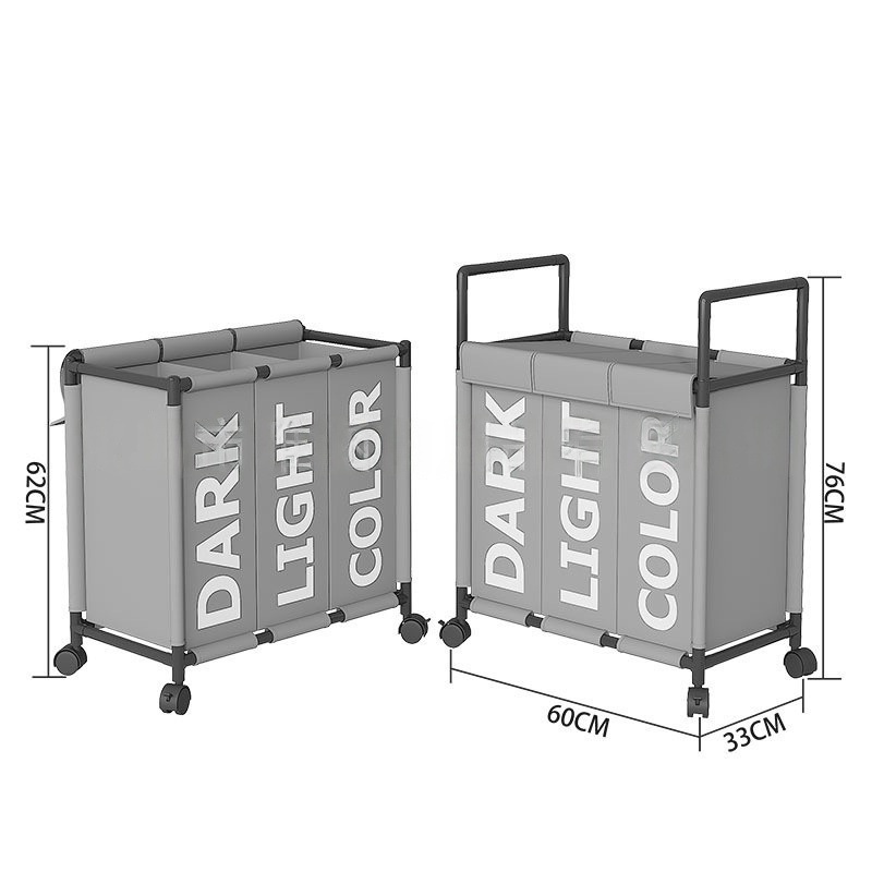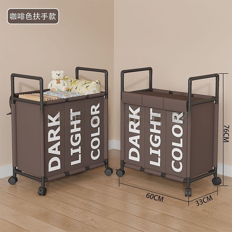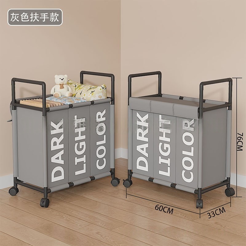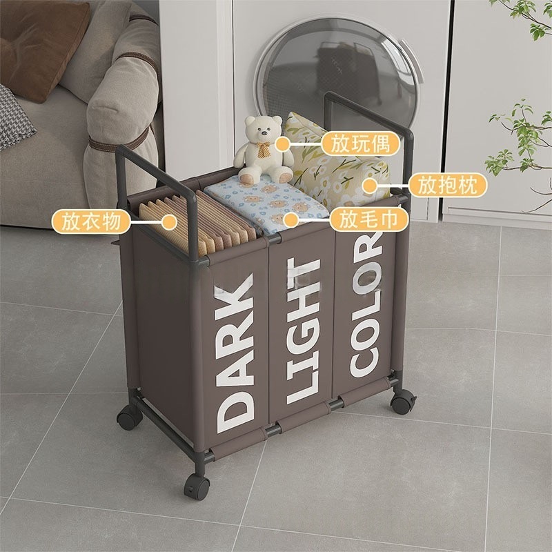 跨境热销大号三格带轮可移动收纳脏衣篮卫生间收纳脏衣篓脏衣桶