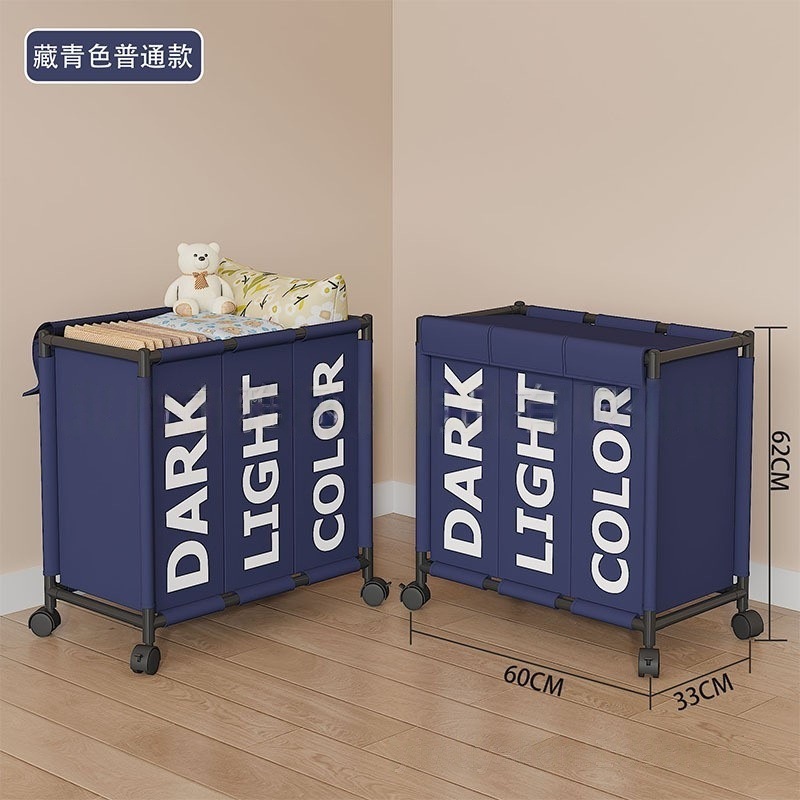跨境热销大号三格带轮可移动收纳脏衣篮卫生间收纳脏衣篓脏衣桶 English | 投诉