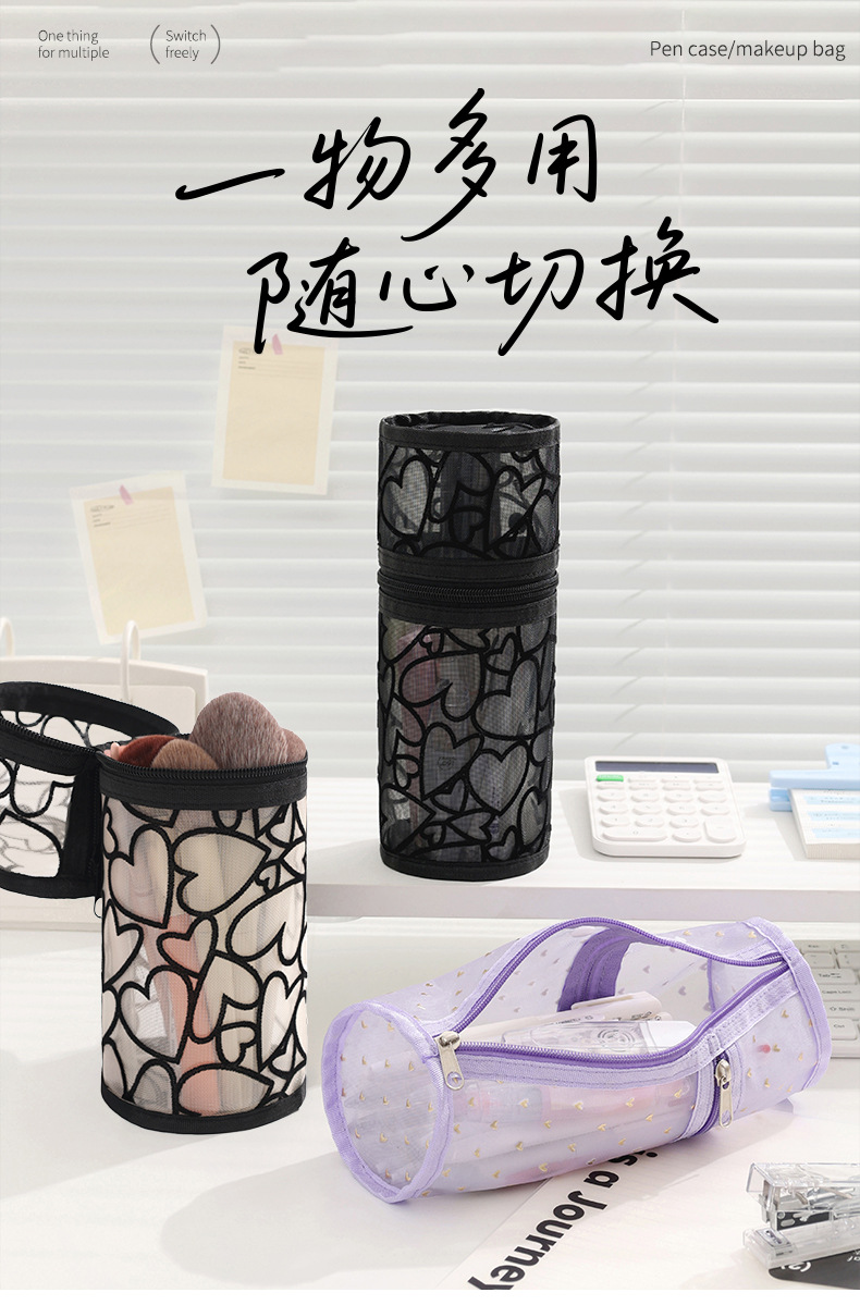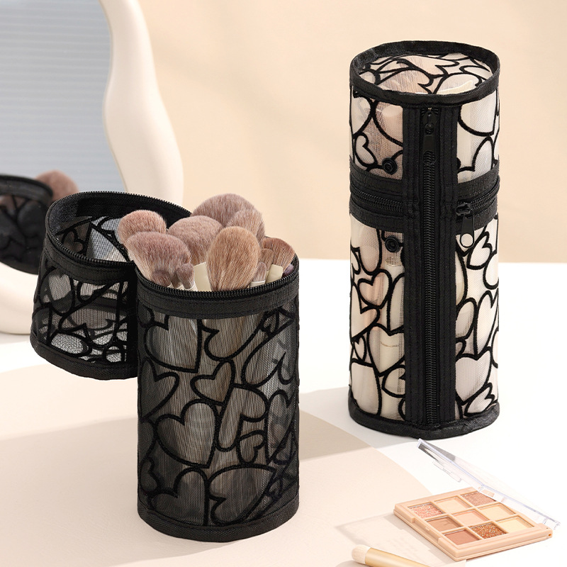 新款网纱圆简收纳包化妆收纳包圆形化妆刷收纳包化妆包大容量