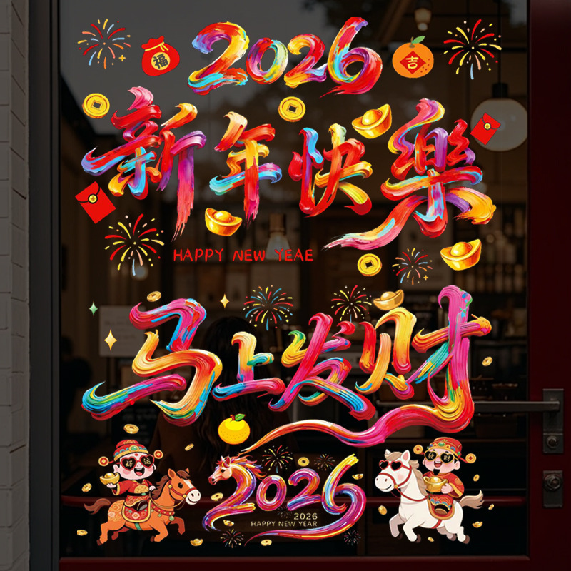 2026马年窗花静电贴墙面橱柜门窗户静电贴过年装饰新年小礼品 English | 投诉