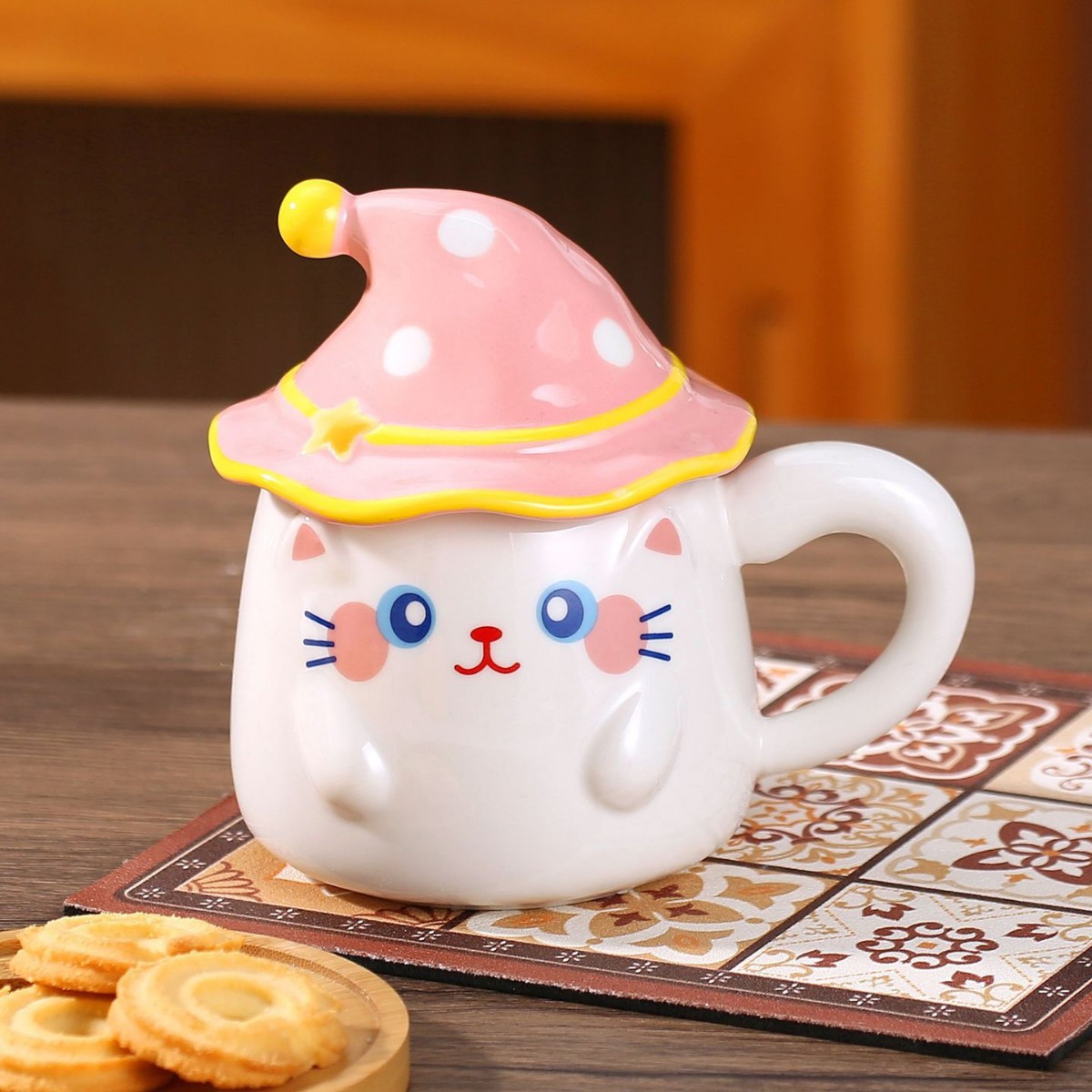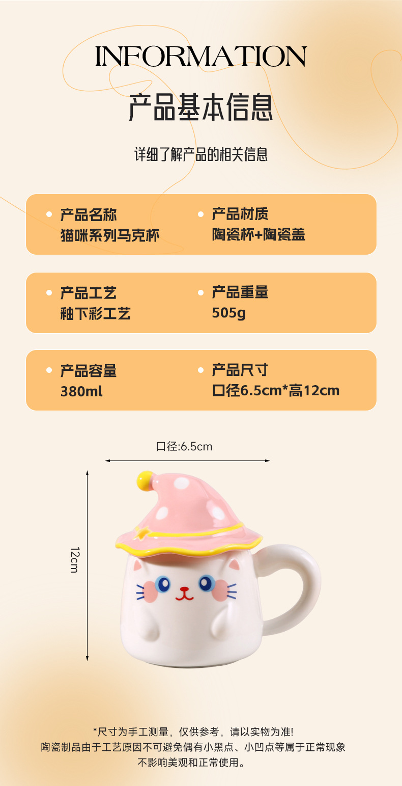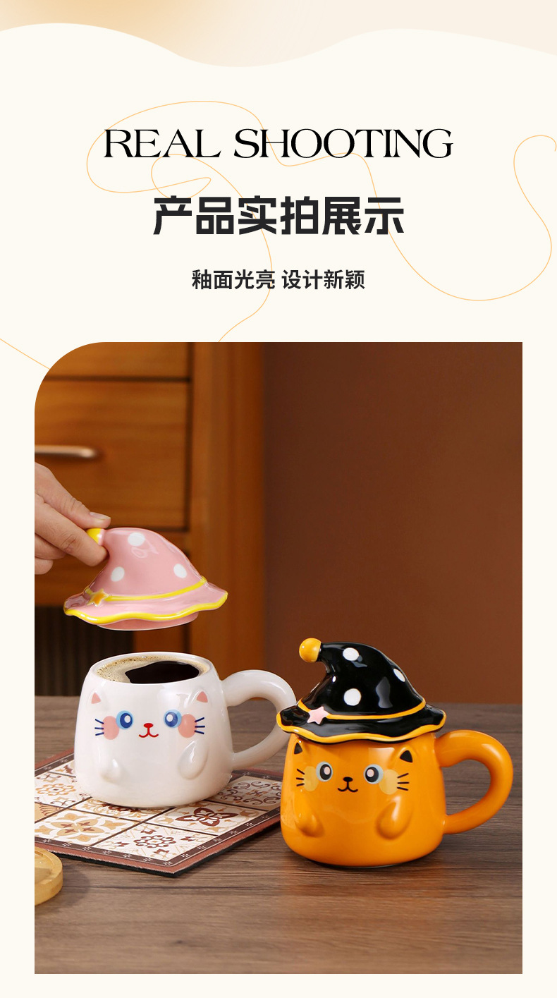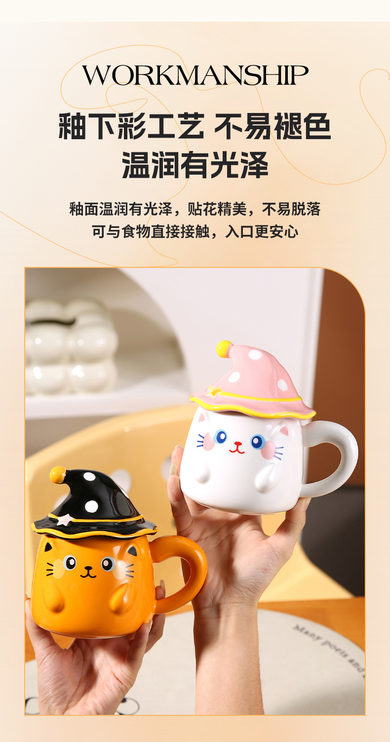 新款个性魔法帽猫咪马克杯伴手礼个性陶瓷卡通咖啡杯萌宠创意水杯 投诉