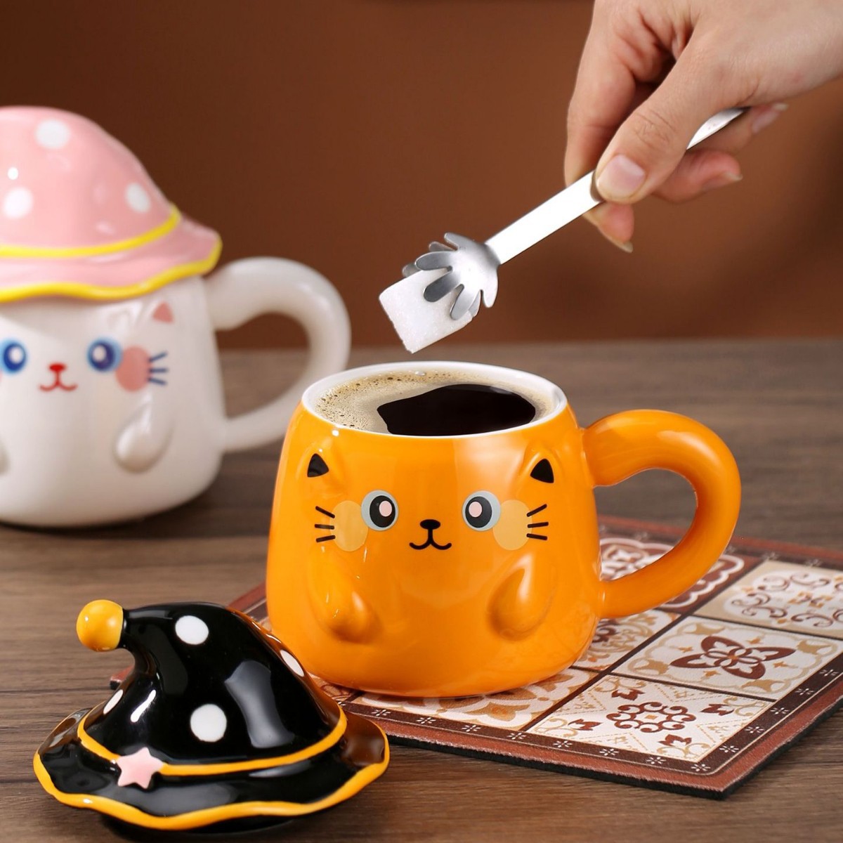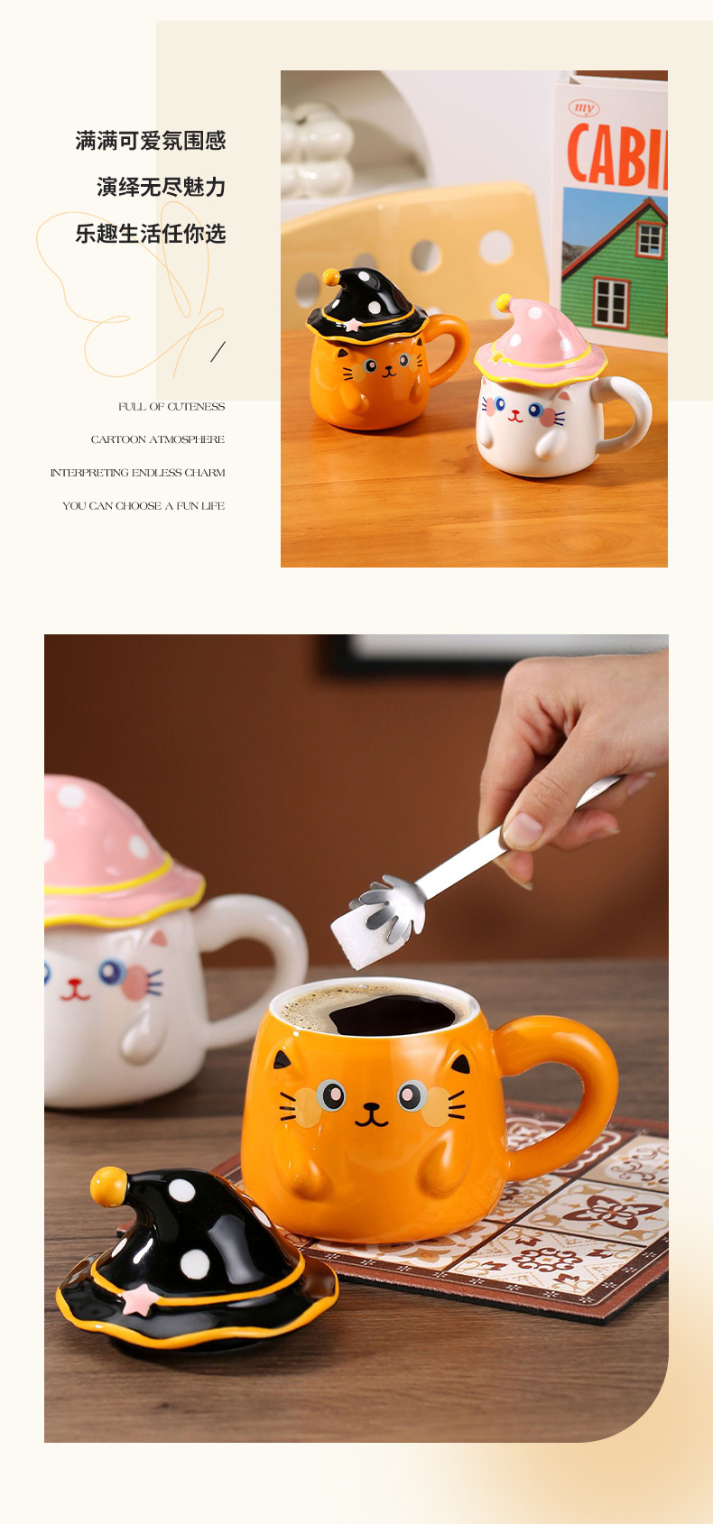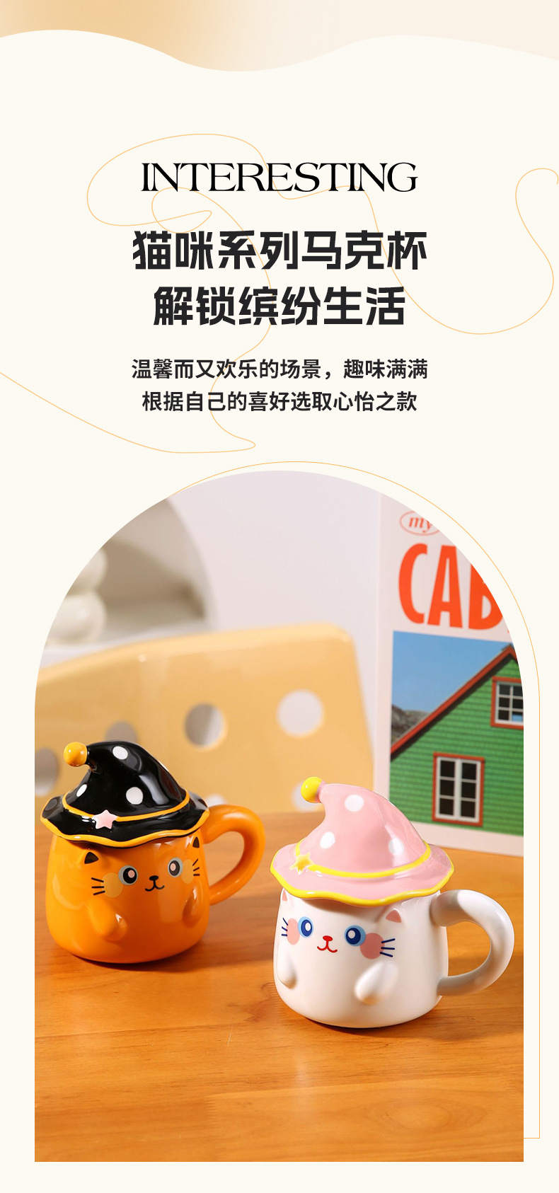 新款个性魔法帽猫咪马克杯伴手礼个性陶瓷卡通咖啡杯萌宠创意水杯 投诉