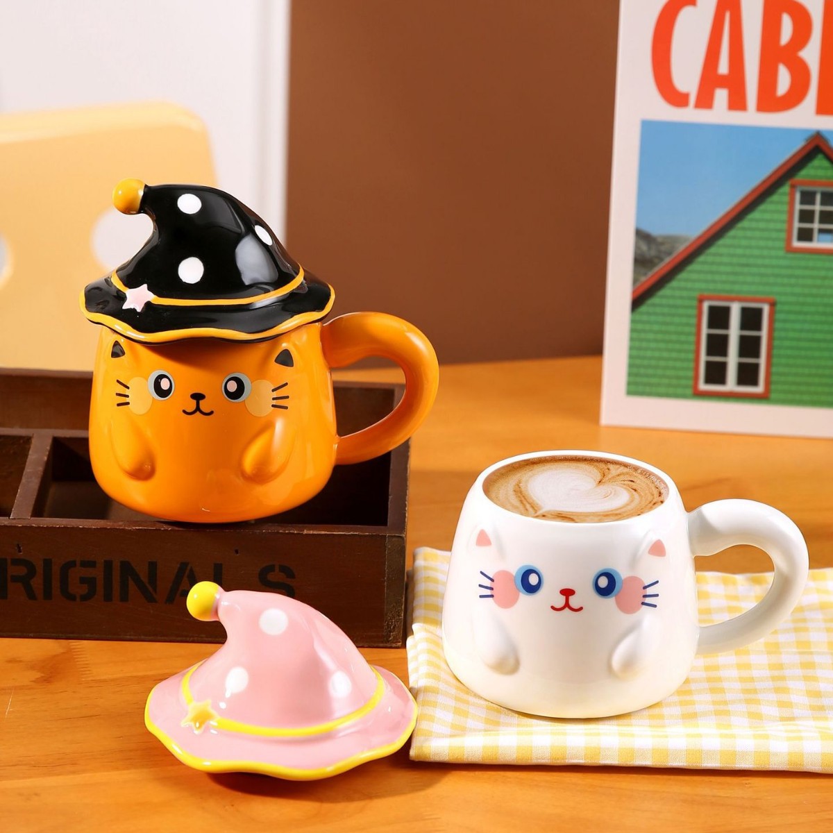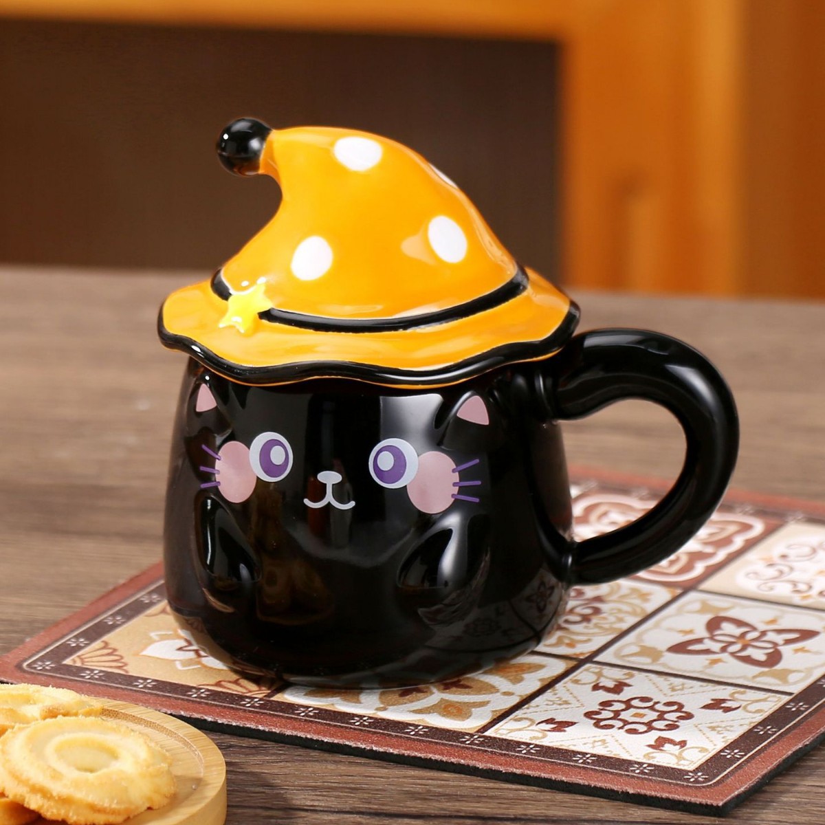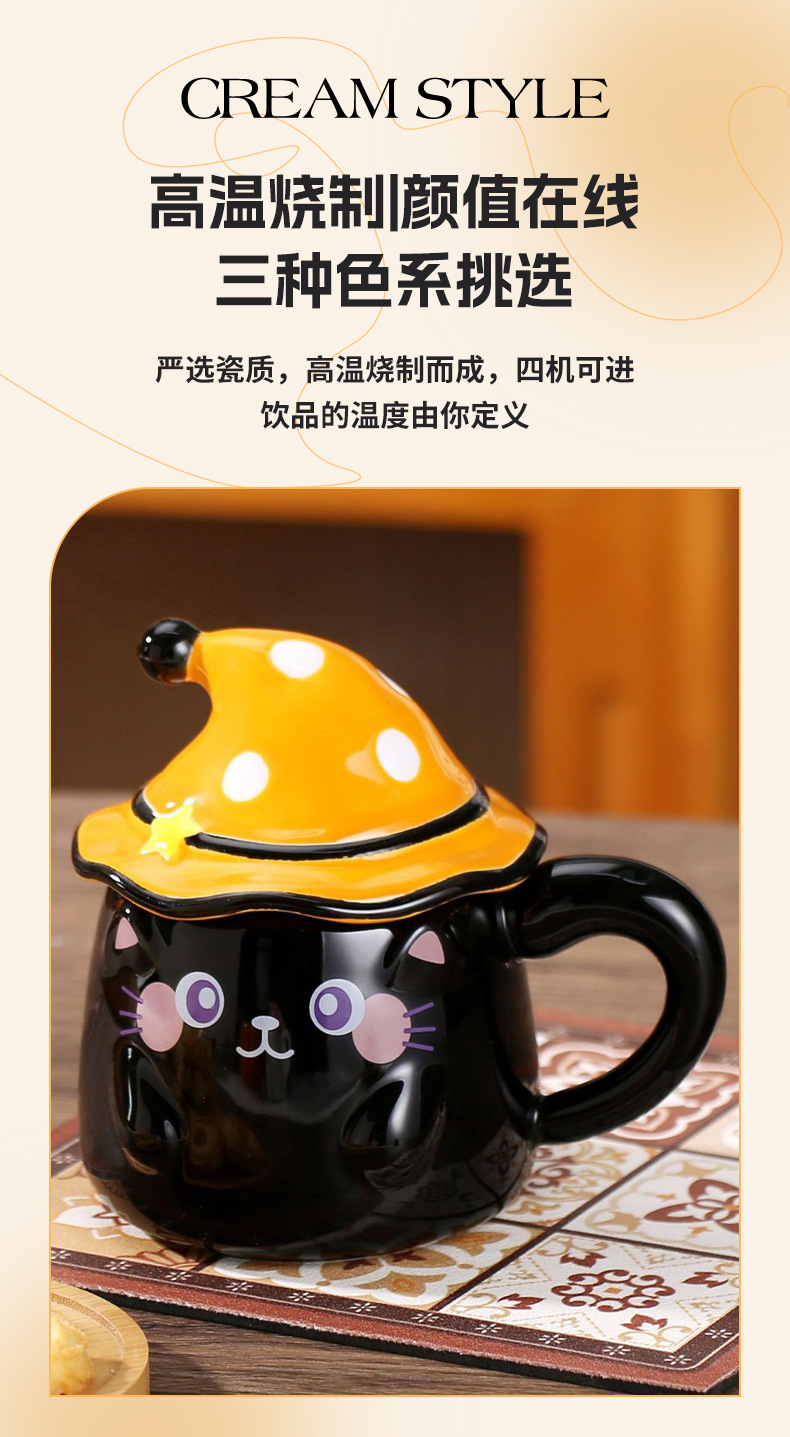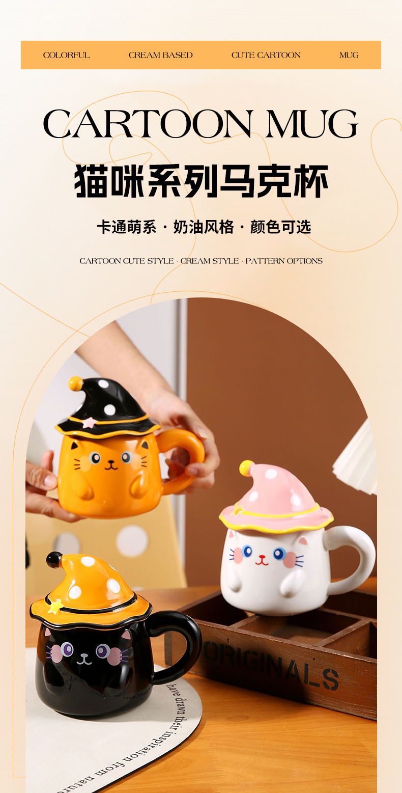 新款个性魔法帽猫咪马克杯伴手礼个性陶瓷卡通咖啡杯萌宠创意水杯