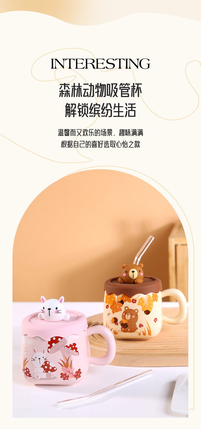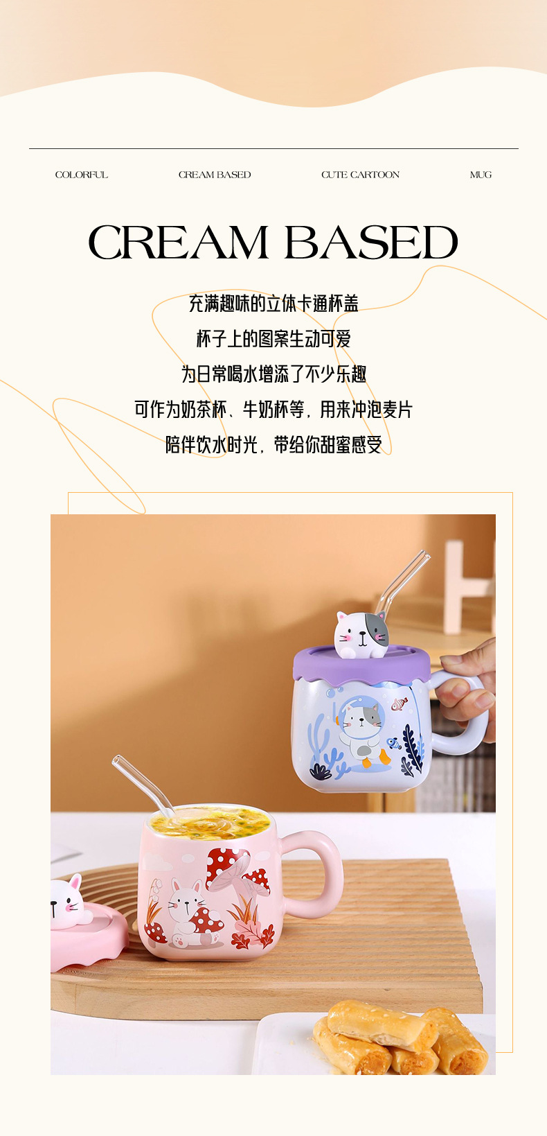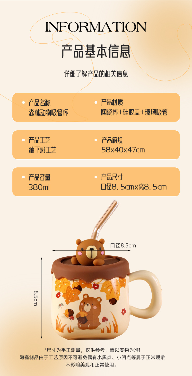 可爱卡通吸管大肚杯女高颜值陶瓷马克杯带盖情侣家用水杯大容量 投诉