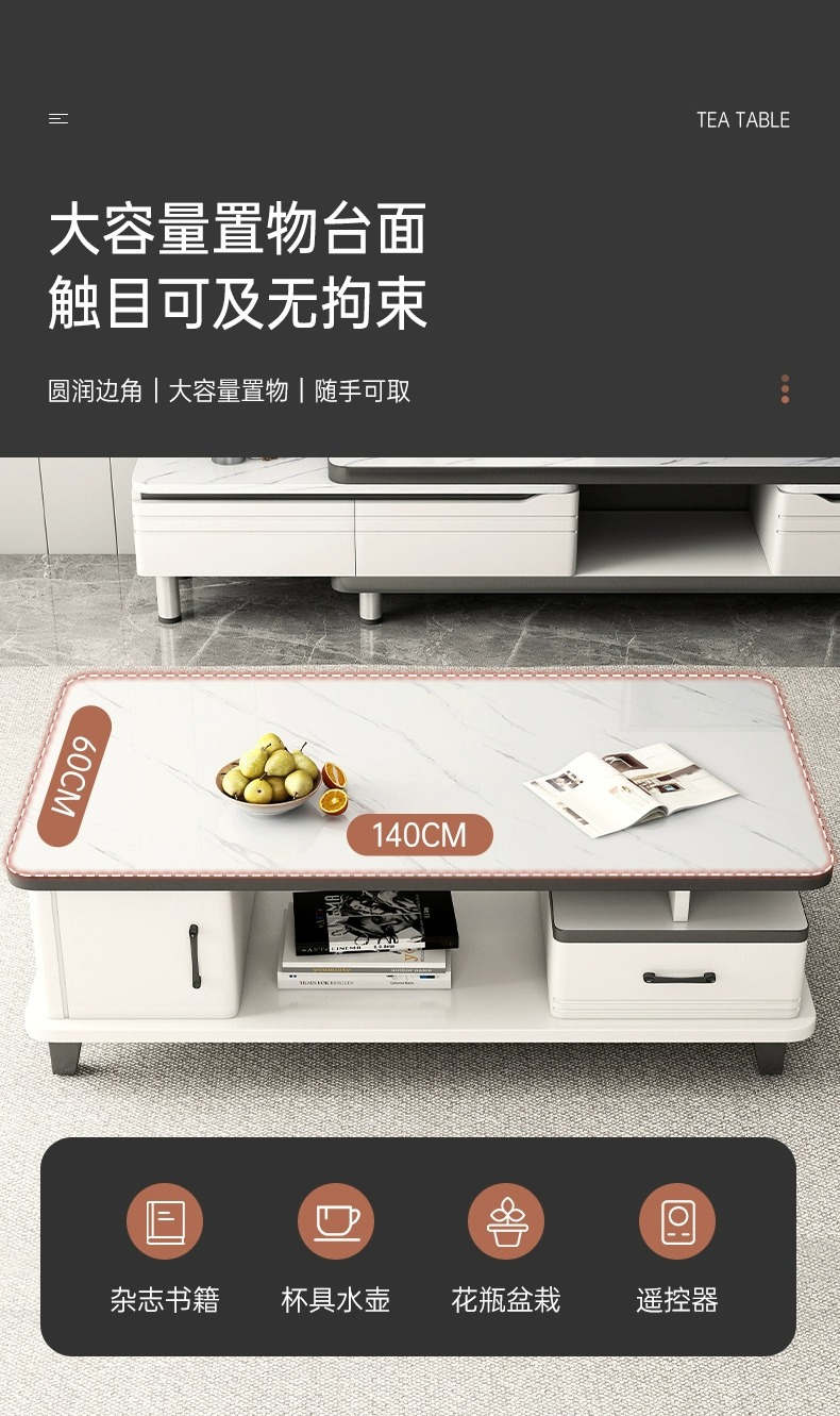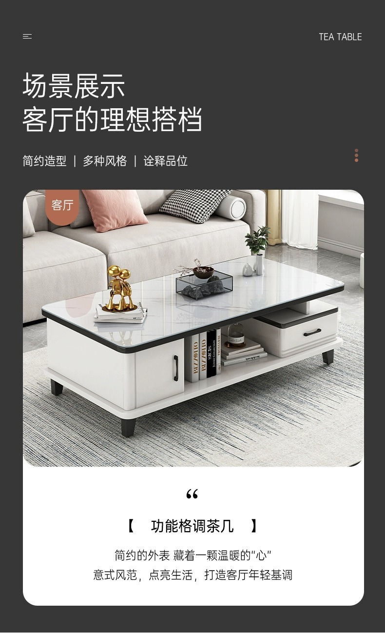茶几客厅家用小户型钢化玻璃茶桌简约现代2023新款岩板阳台小茶台