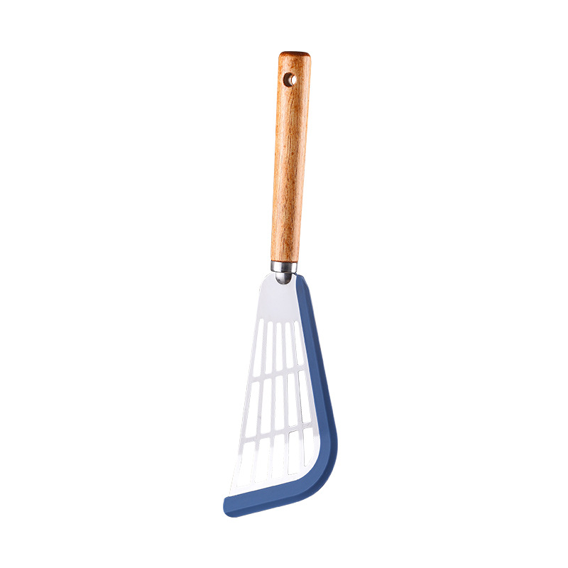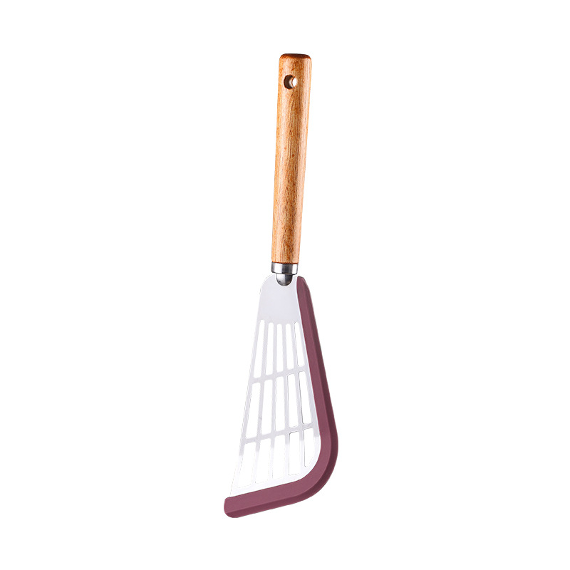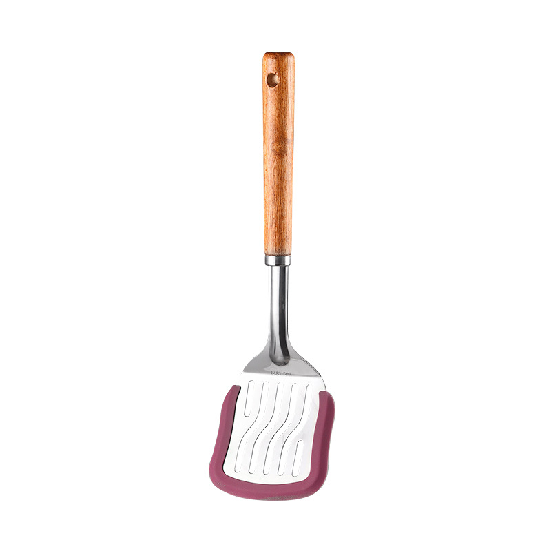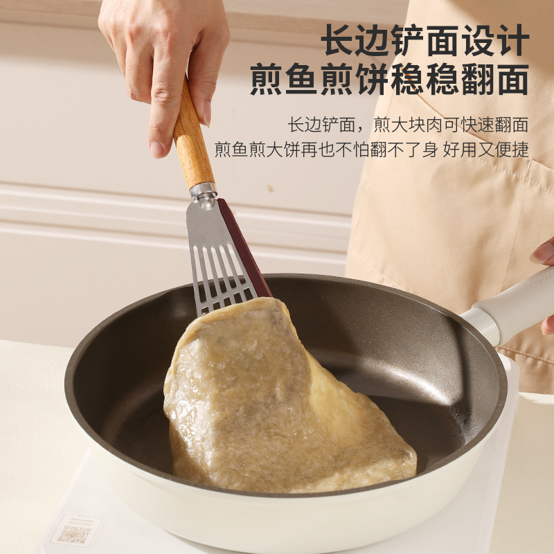 材质:大扇形漏铲不锈钢材质为430不锈钢,方形漏铲为304不锈钢;边缘包裹铂金级硅胶;手柄为木质;