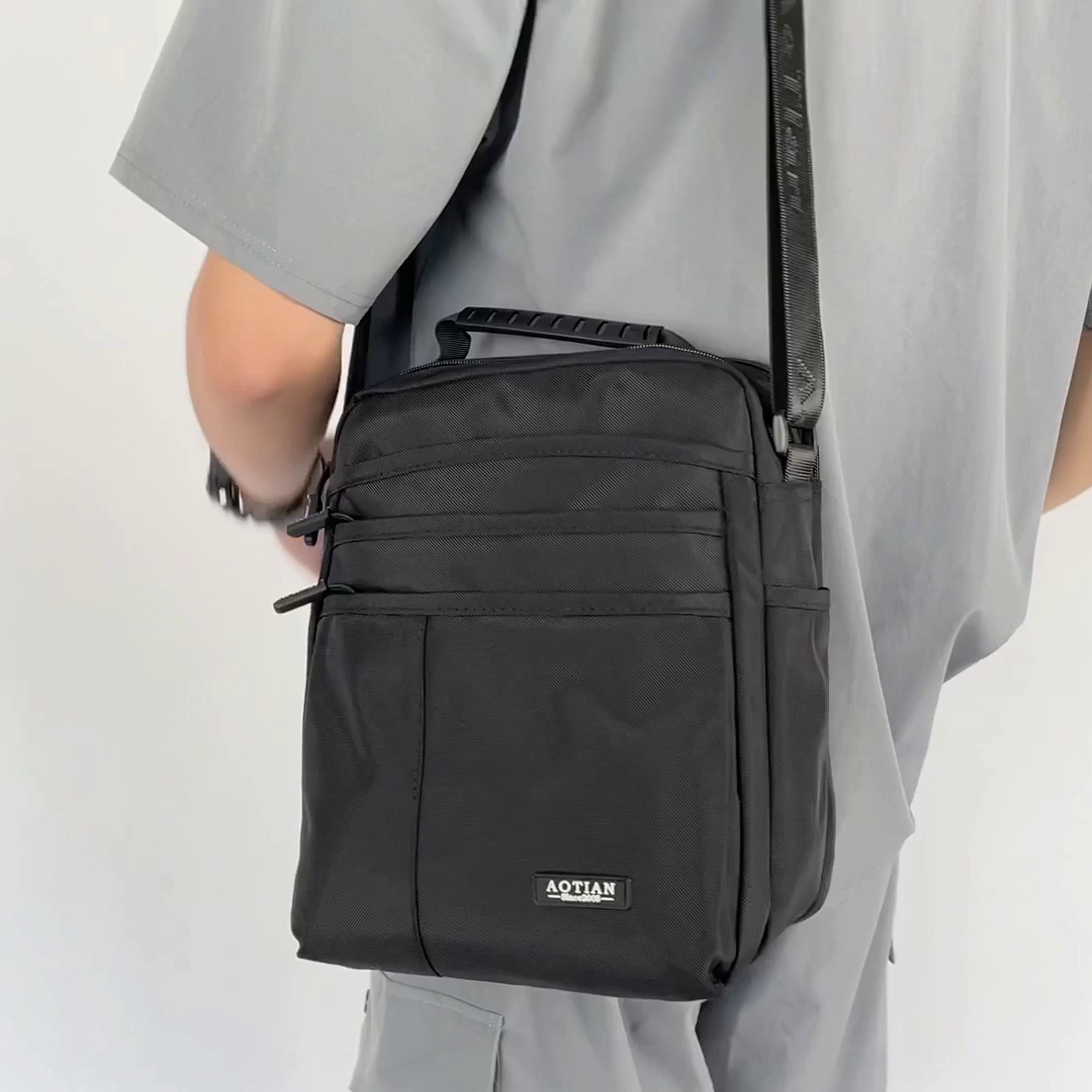 新款男士单肩包韩版大容量津布斜挎包多层商务男包竖款通勤休闲包