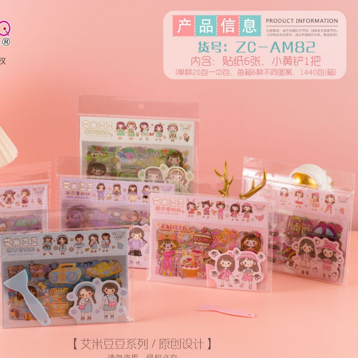 装箱数量:1440包/箱=72中包,每箱6种不同图案。