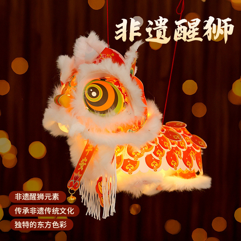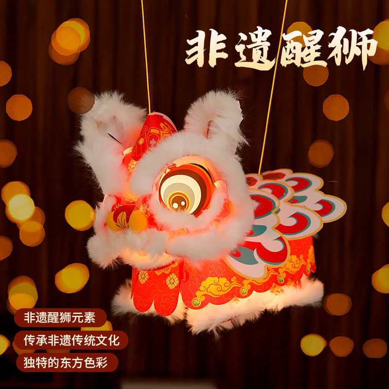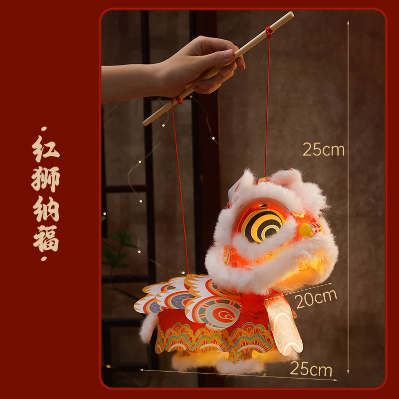 新春马年瑞宝醒狮灯笼手工DIY材料幼儿园古风花灯舞狮手提玩偶 English | 投诉
