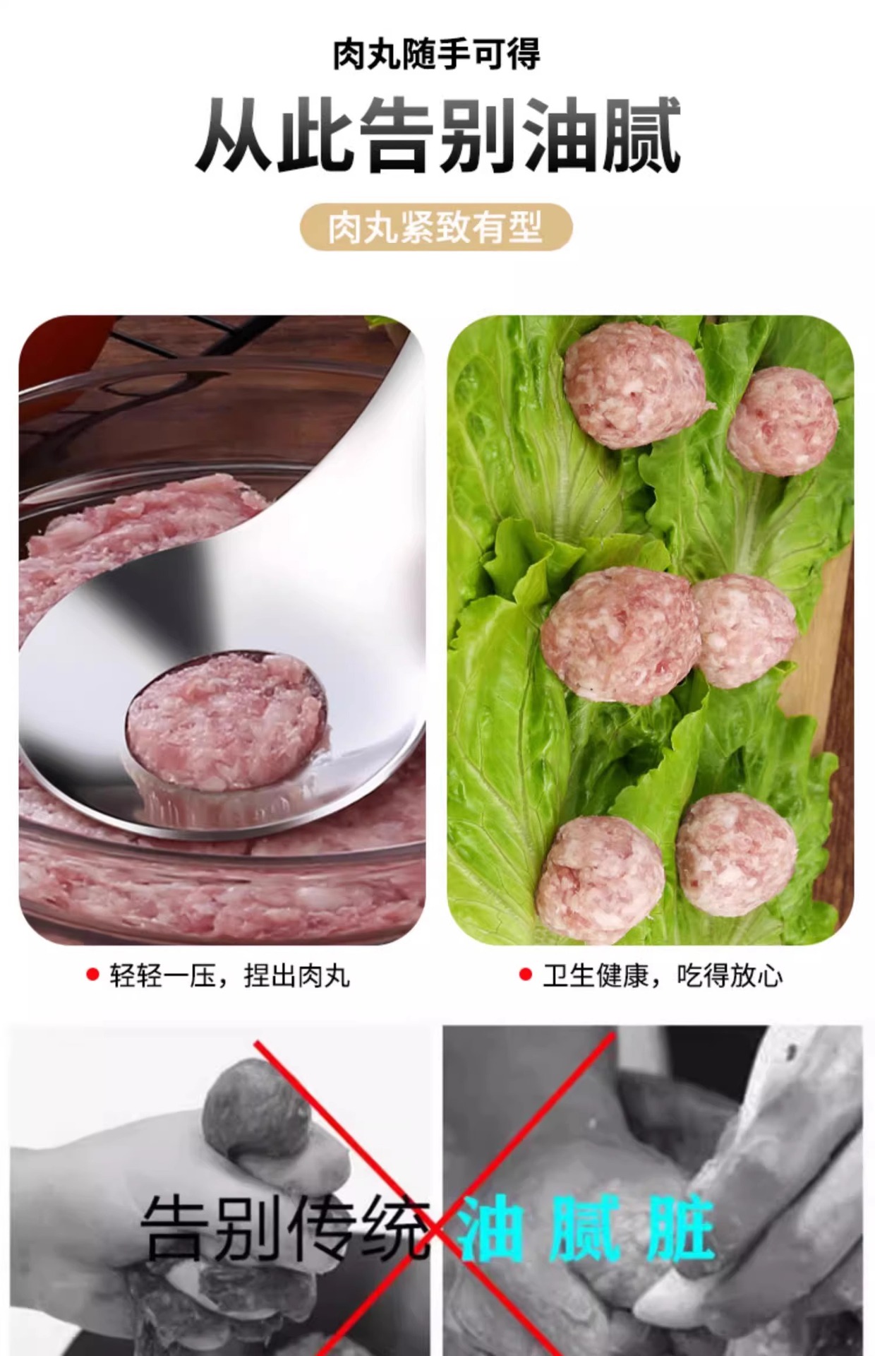 不锈钢肉丸勺按压肉丸制作器家用鱼丸肉丸挤勺子神器漏勺压丸器 English | 投诉
