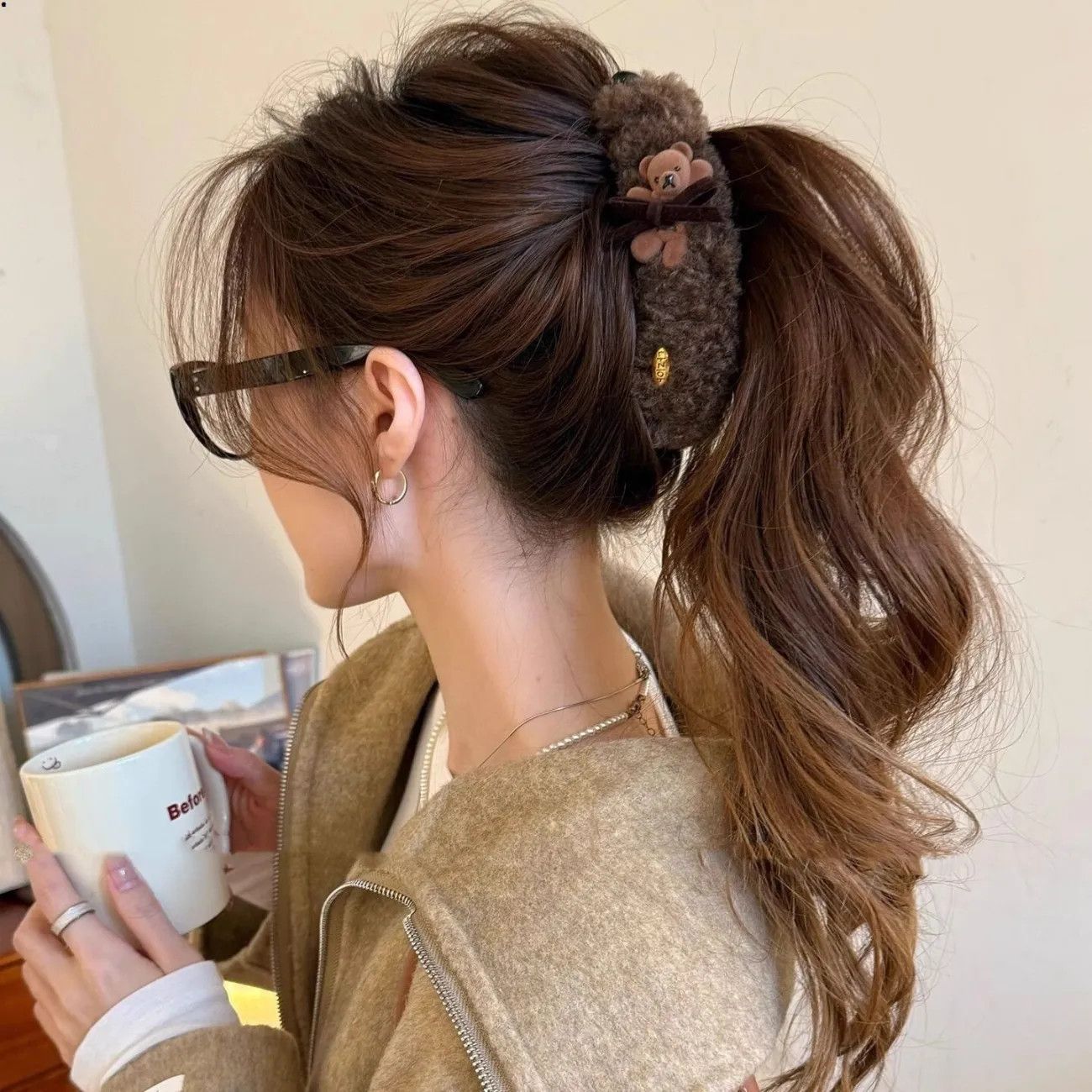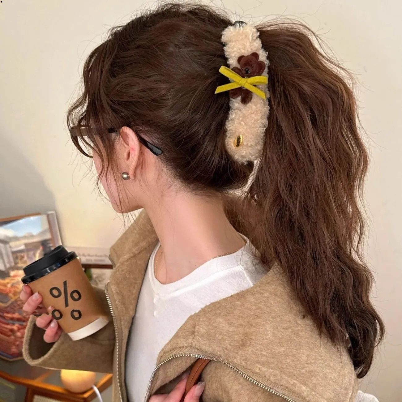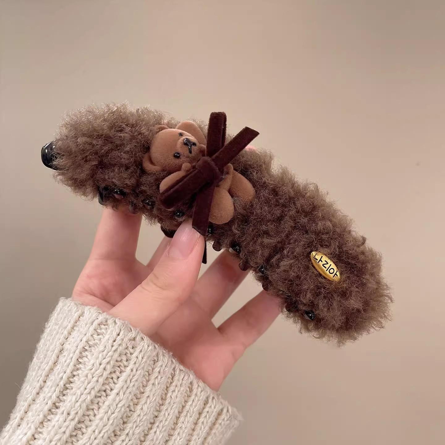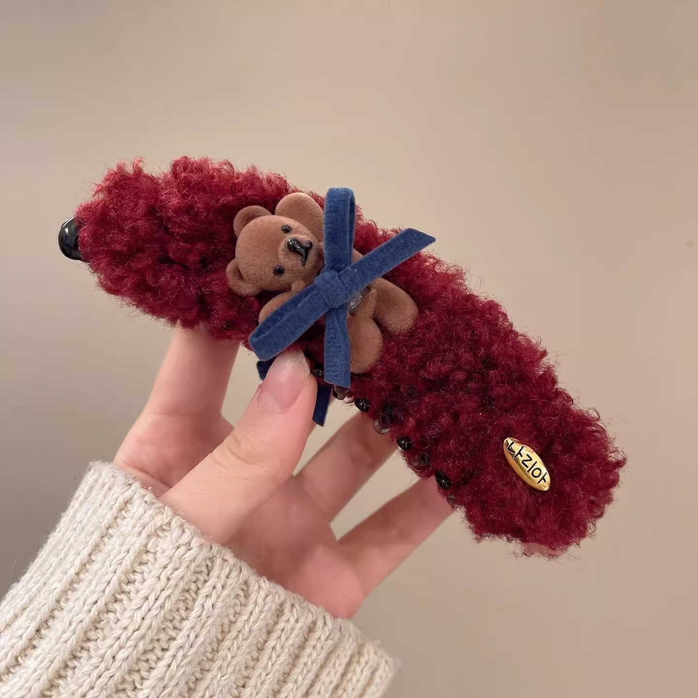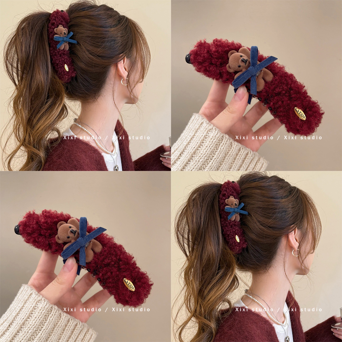 可爱小熊蝴蝶结毛绒高马尾香蕉夹2025新款甜美时尚百搭发饰抓夹女 投诉