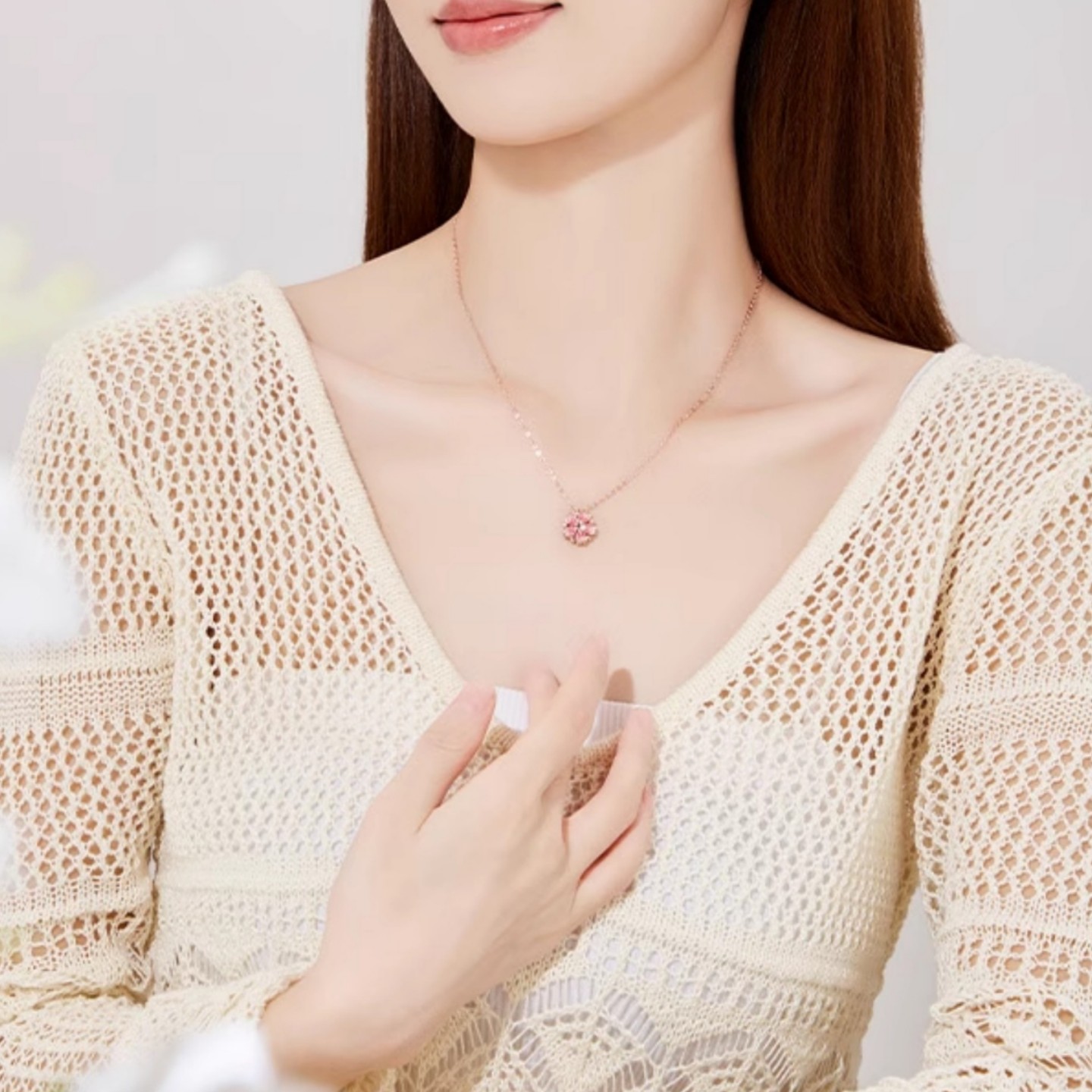 桃花项炼女式2025新款高端轻奢小众百搭女式吊坠中国情人节送女友 投诉