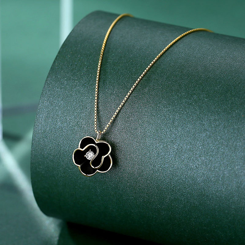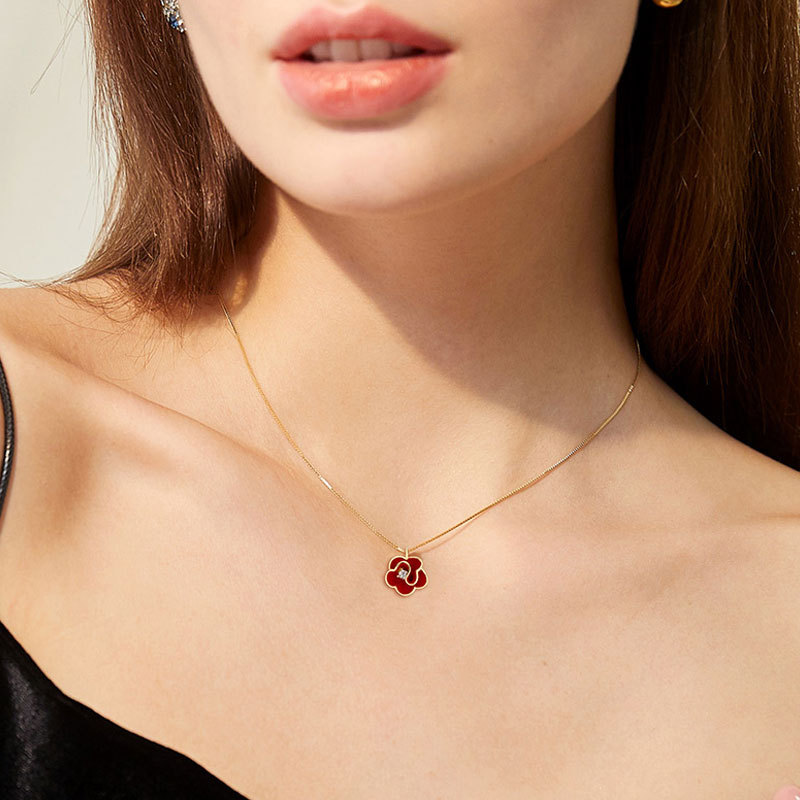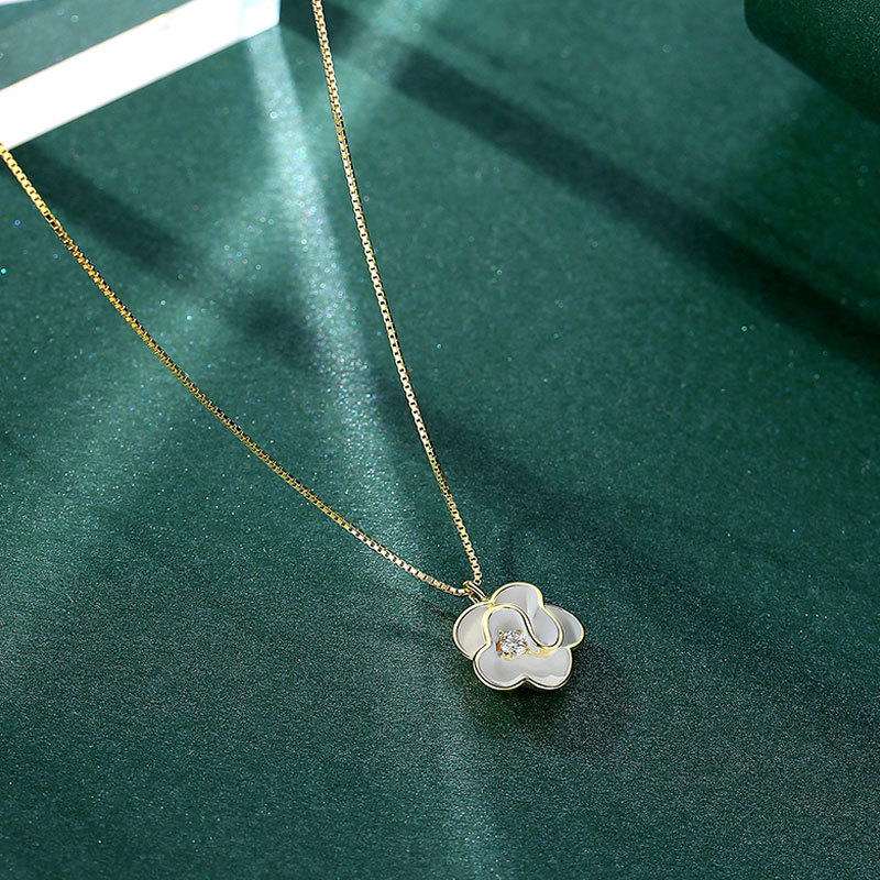 国风新款简约复古山茶花项链网红简约花朵吊坠锁骨链学生饰品批发