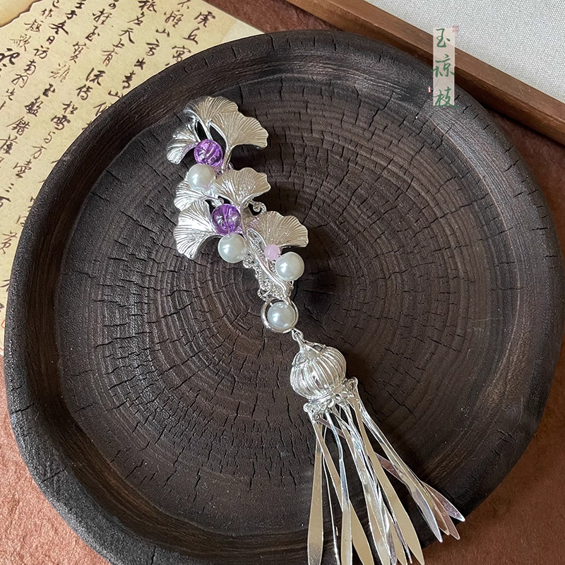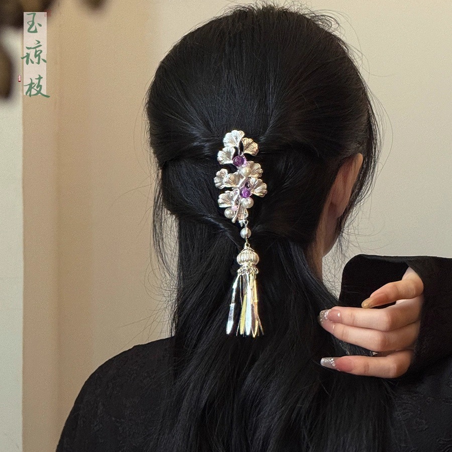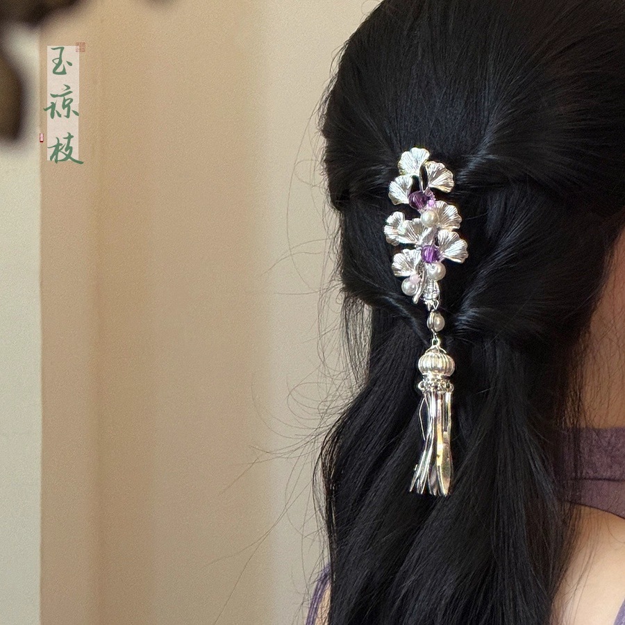 【银杏】新中式银色花朵流苏发夹女超仙精致小众2025新款爆款发饰
