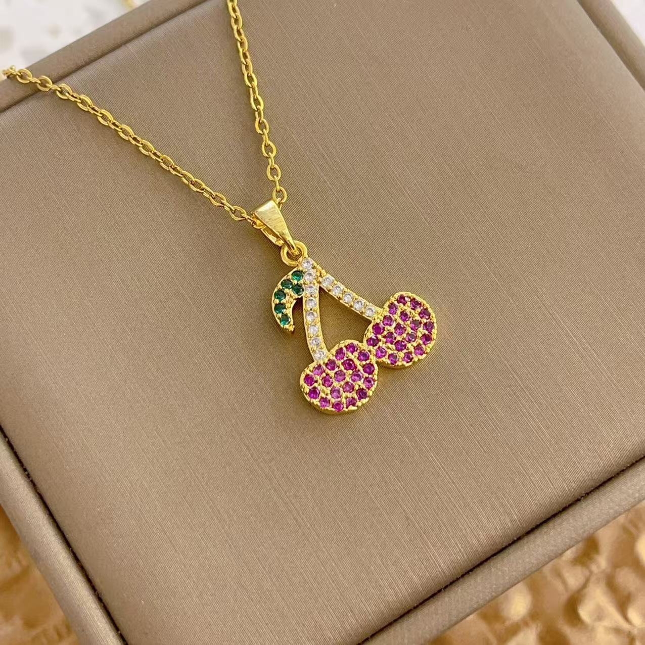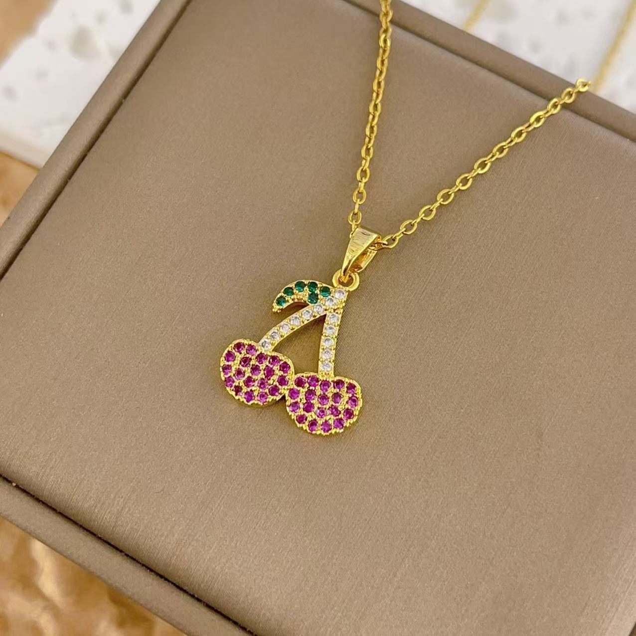 新款潮流时尚网红钛钢项链女圣诞个性樱桃锁骨链小众轻奢气质吊坠