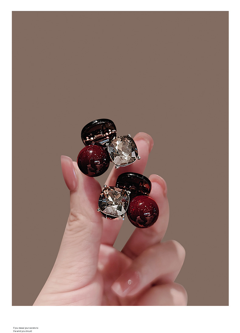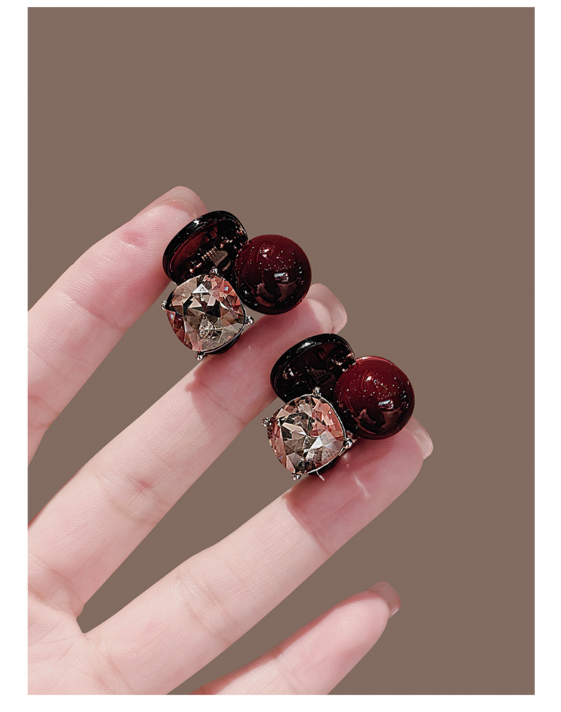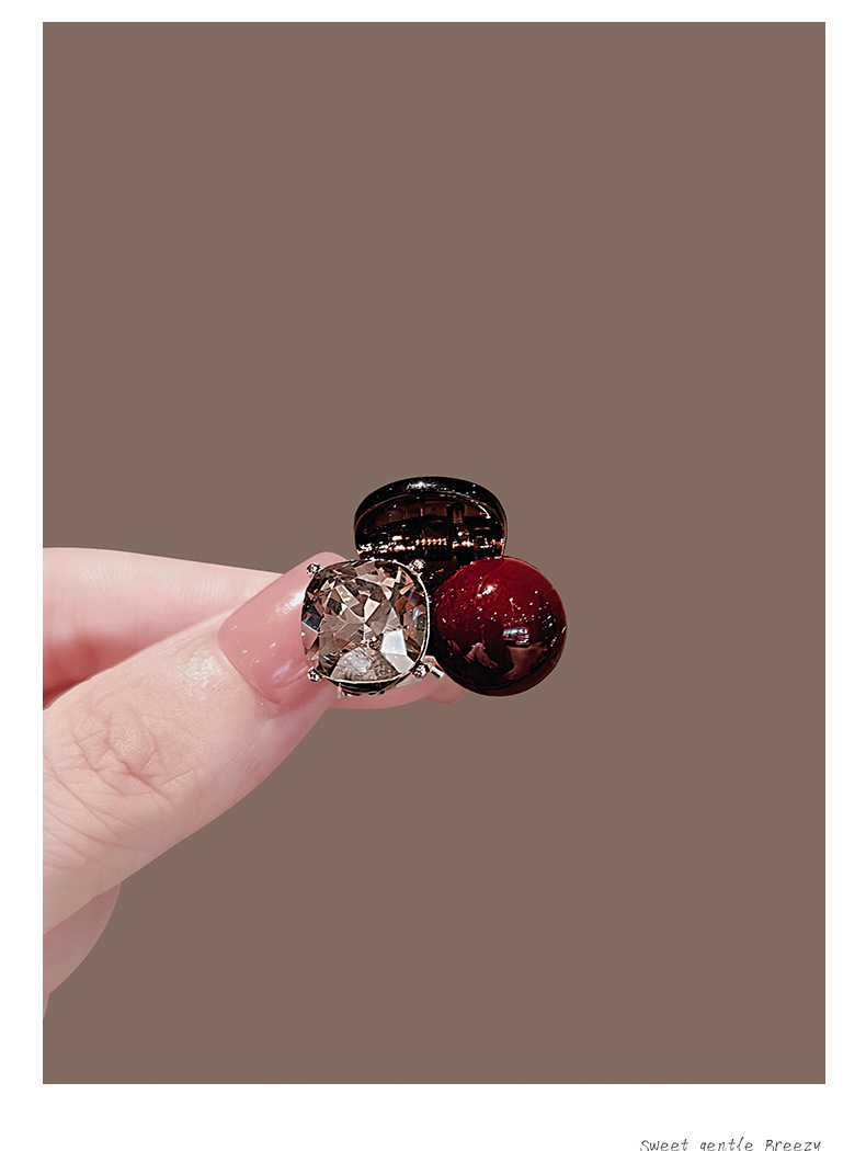 轻奢镶钻红色珍珠水钻抓夹小号刘海夹前额碎发夹公主头发夹子头饰