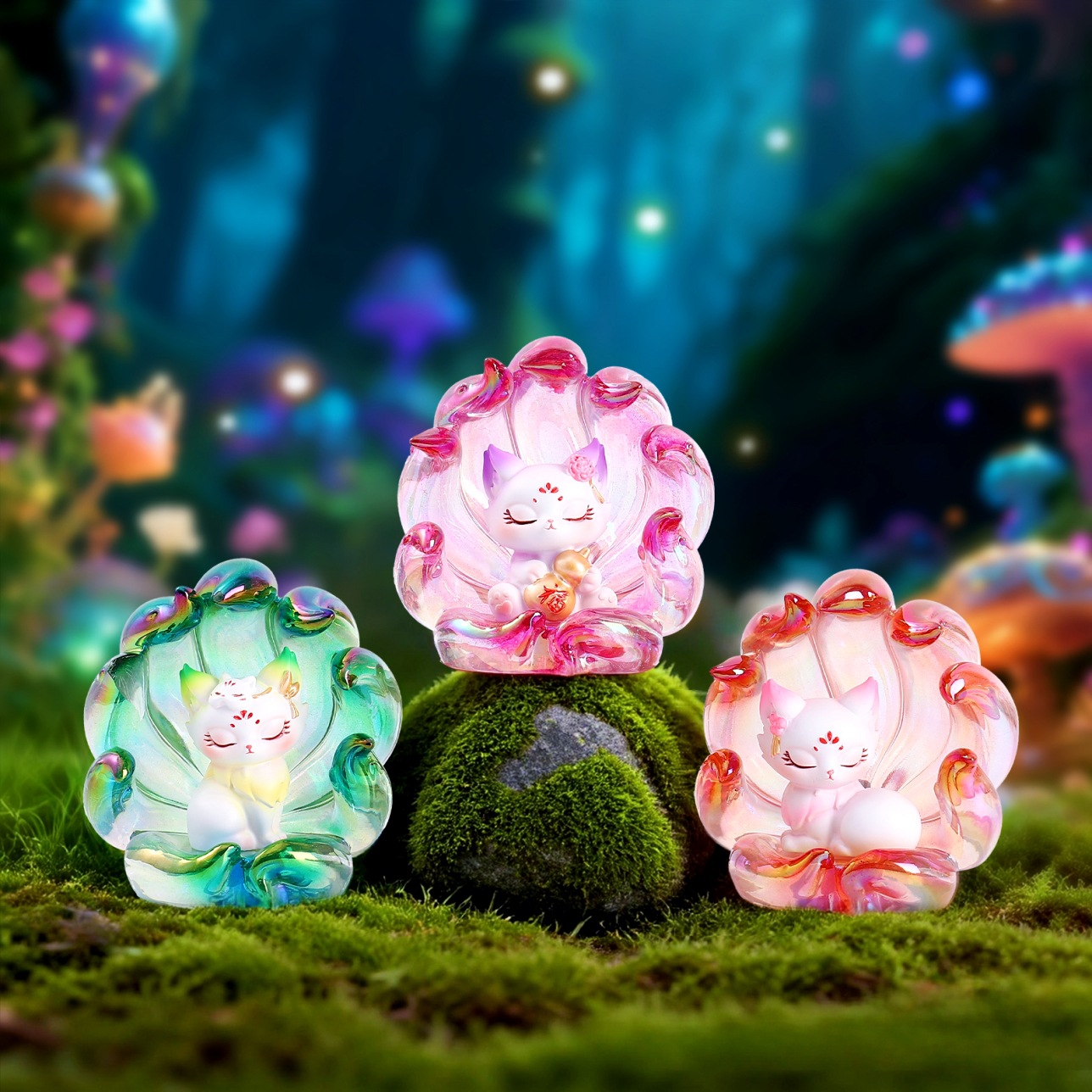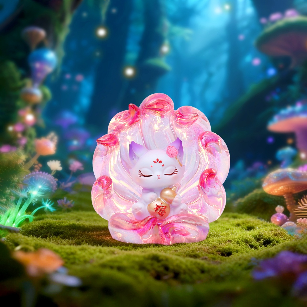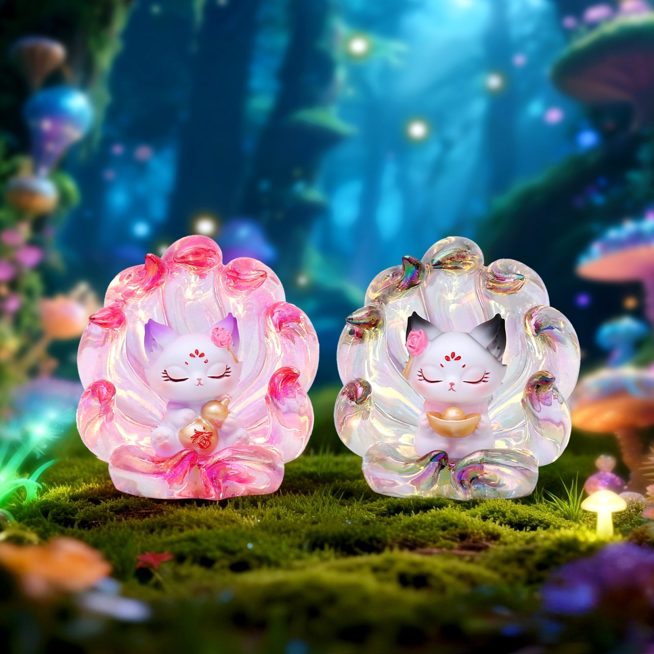 A121踏月而来九尾狐小灯盲盒-电镀