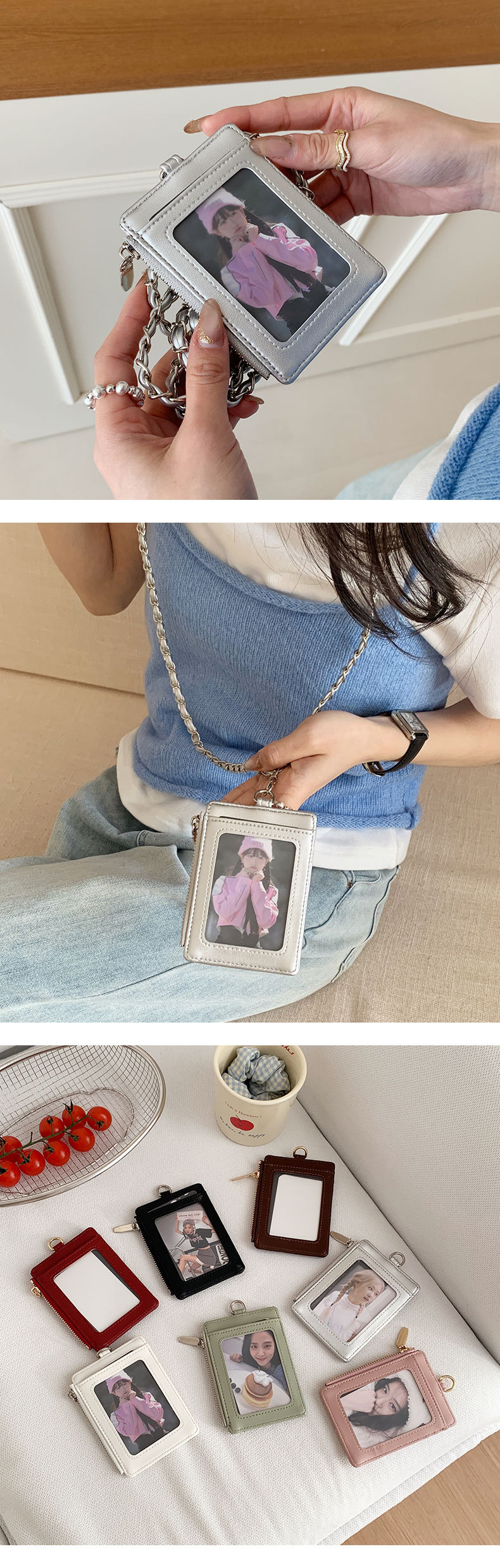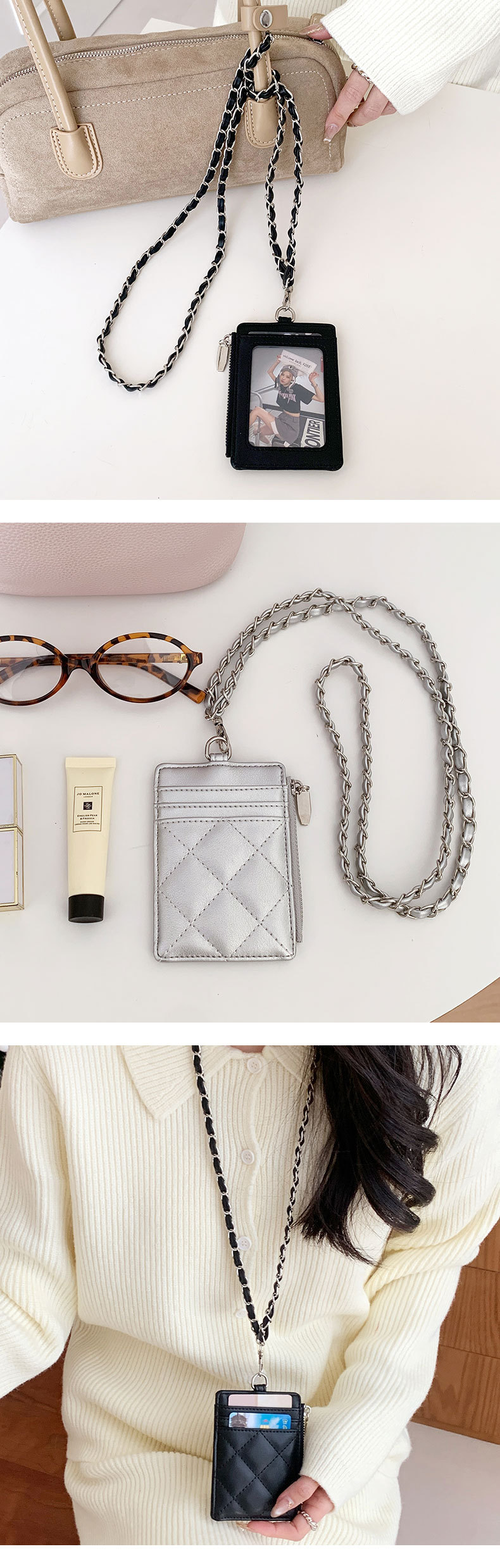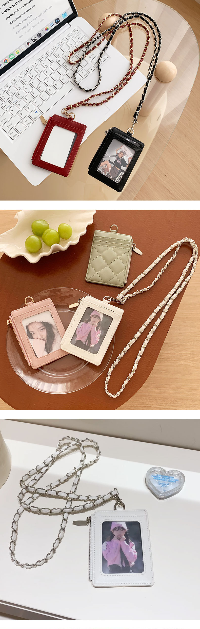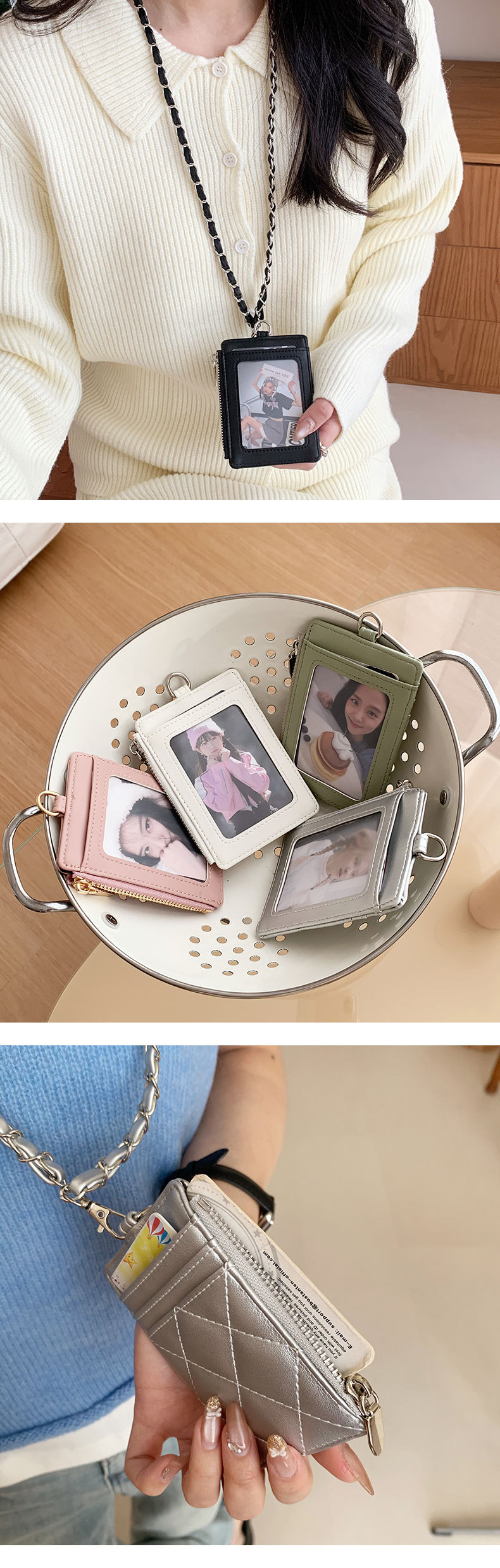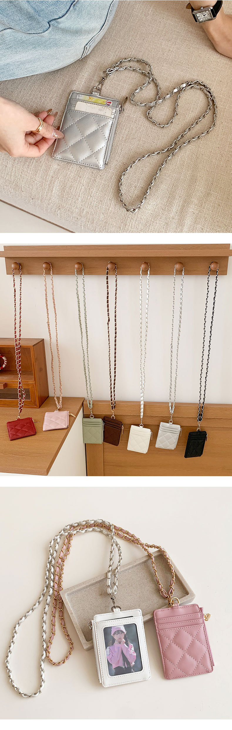 东大门爆款~小香风PU挂脖链条卡包证件收纳包女士钱包菱格皮卡套 English | 投诉