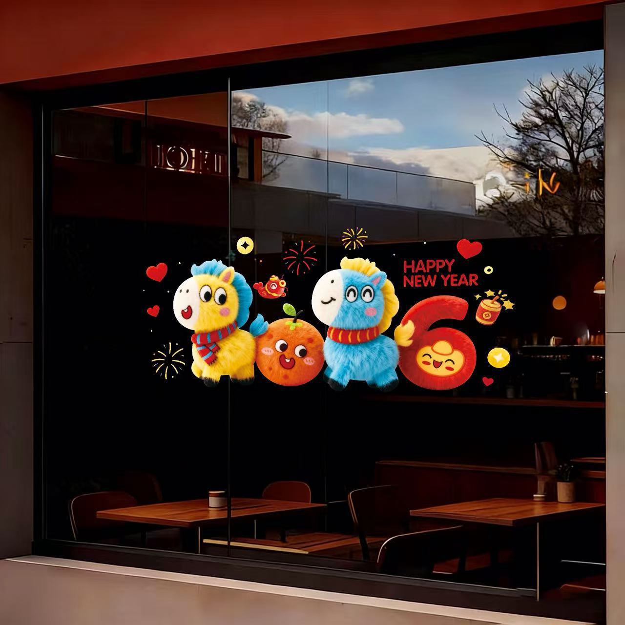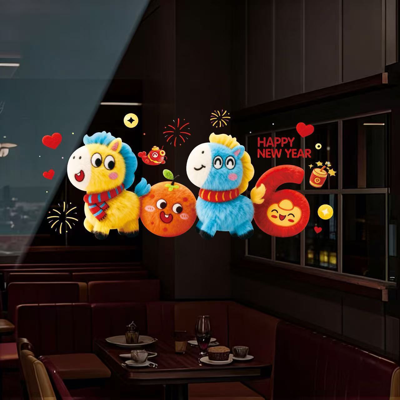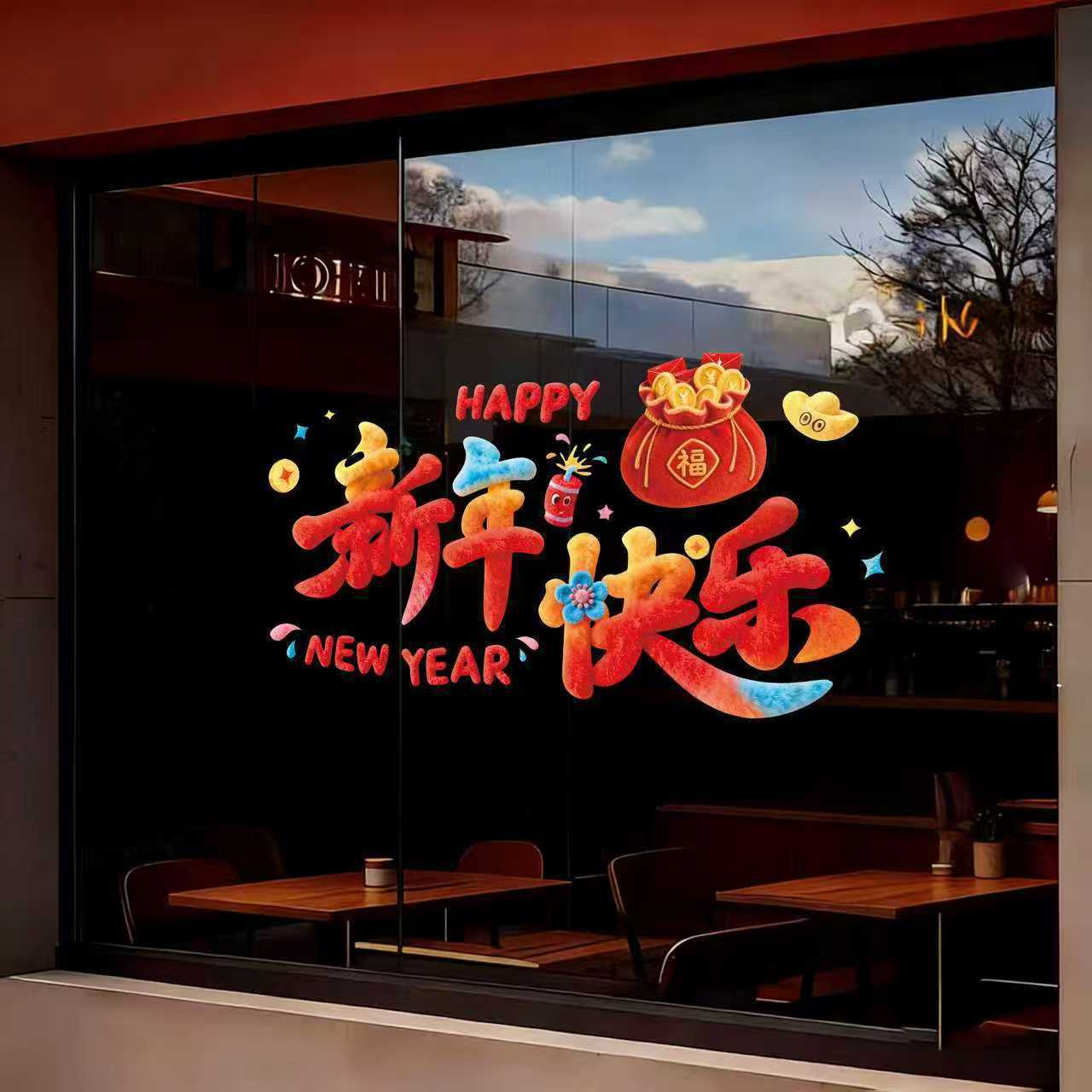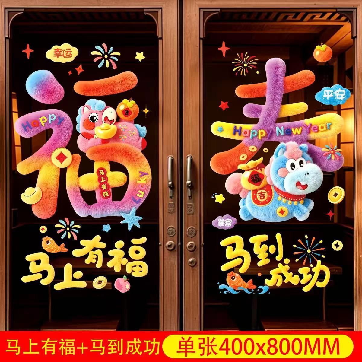 马年新年立体橱窗贴新年快乐卡通装饰贴店铺门窗节日氛围布置窗贴 English | 投诉