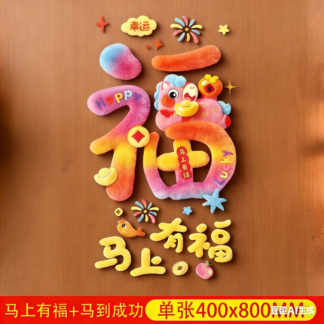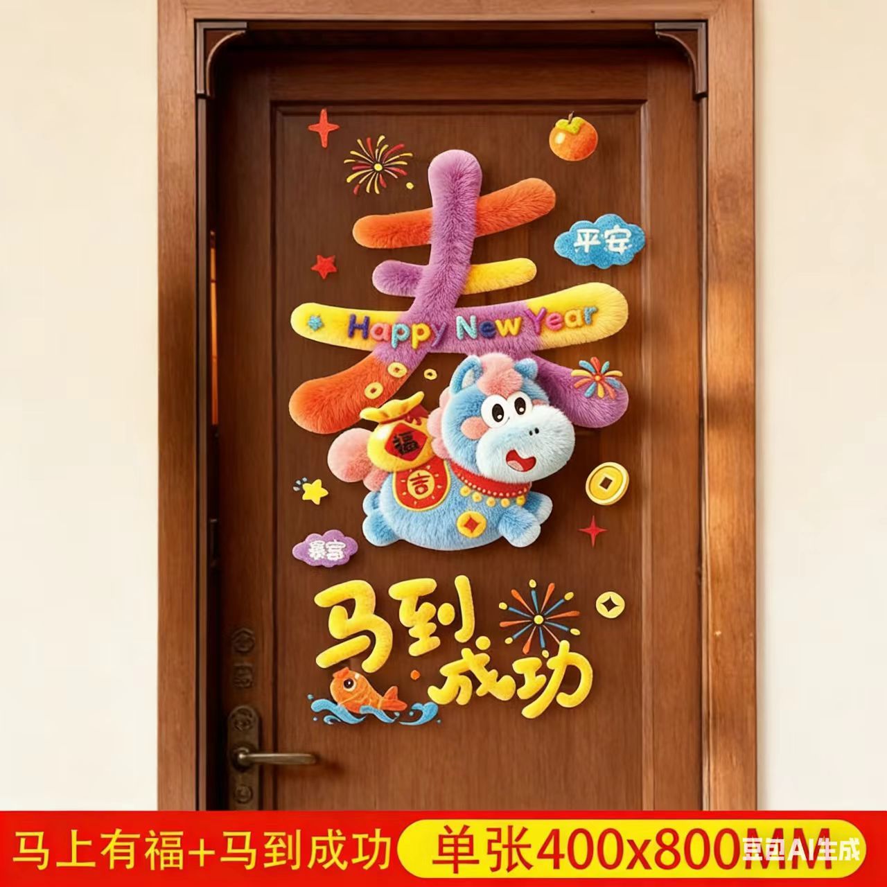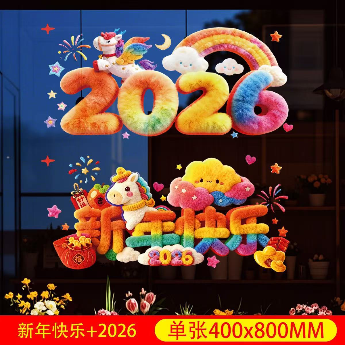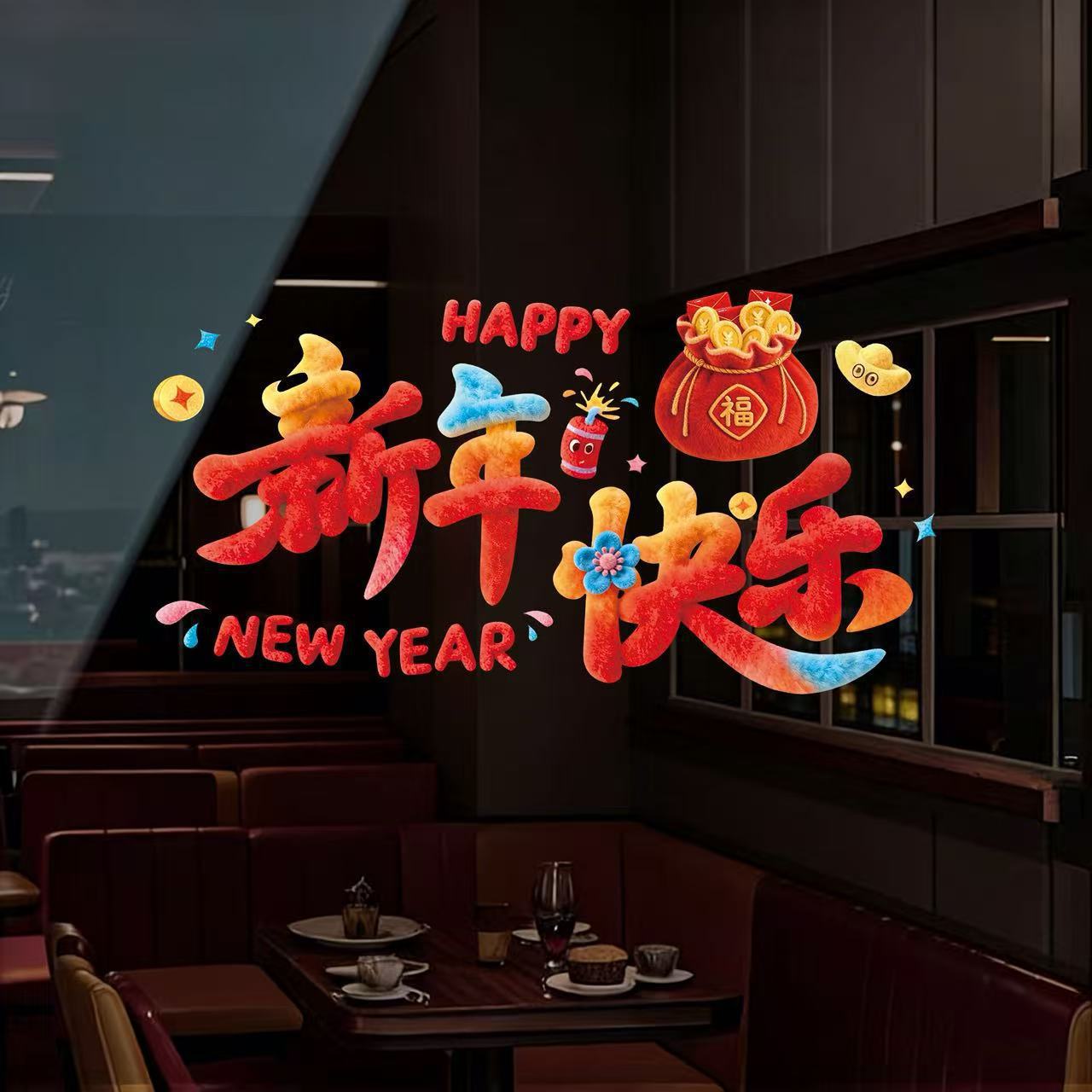 马年新年立体橱窗贴新年快乐卡通装饰贴店铺门窗节日氛围布置窗贴 English | 投诉