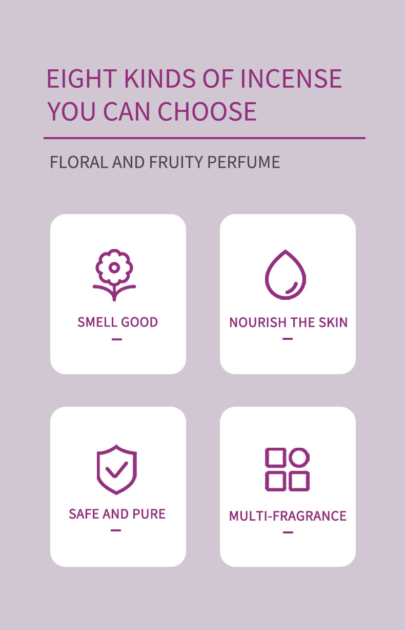 产品类别: 止汗喷雾 规格: 正常规格 使用方法: 喷雾 适用人群: 女士 是否进口: 否 品牌类型: 国货品牌 货号: BBW1006-BBW1010 适用肤质: 混合性 香型: 花香 产地: 广东 上市时间: 2025 品名: 跨境香水 生产许可证号: 粤妆20161475 保质期: 5年 主要下游平台: ebay,亚马逊,wish,速卖通,独立 主要销售地区: 非洲,欧洲,南美,东南亚,北美,中东 重量: 0.5 kg/瓶