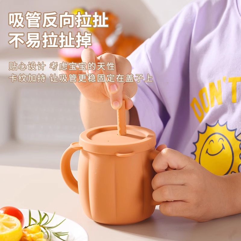 材质:铂金食品级硅胶儿童水杯三件套(杯体+盖子+吸管)