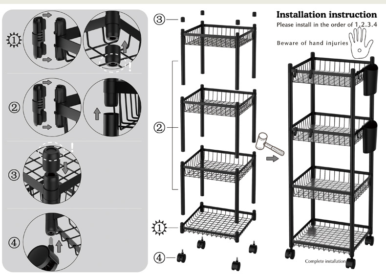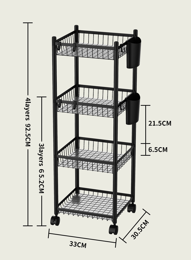 ITEM NO.:4017-4(四层夹缝置物架;落地;带轮)↓