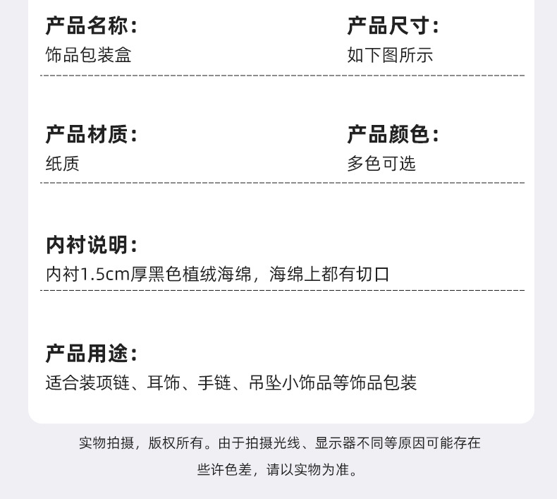| 7×9×3(项链盒含海绵) | ¥123 | 98567个可售 |