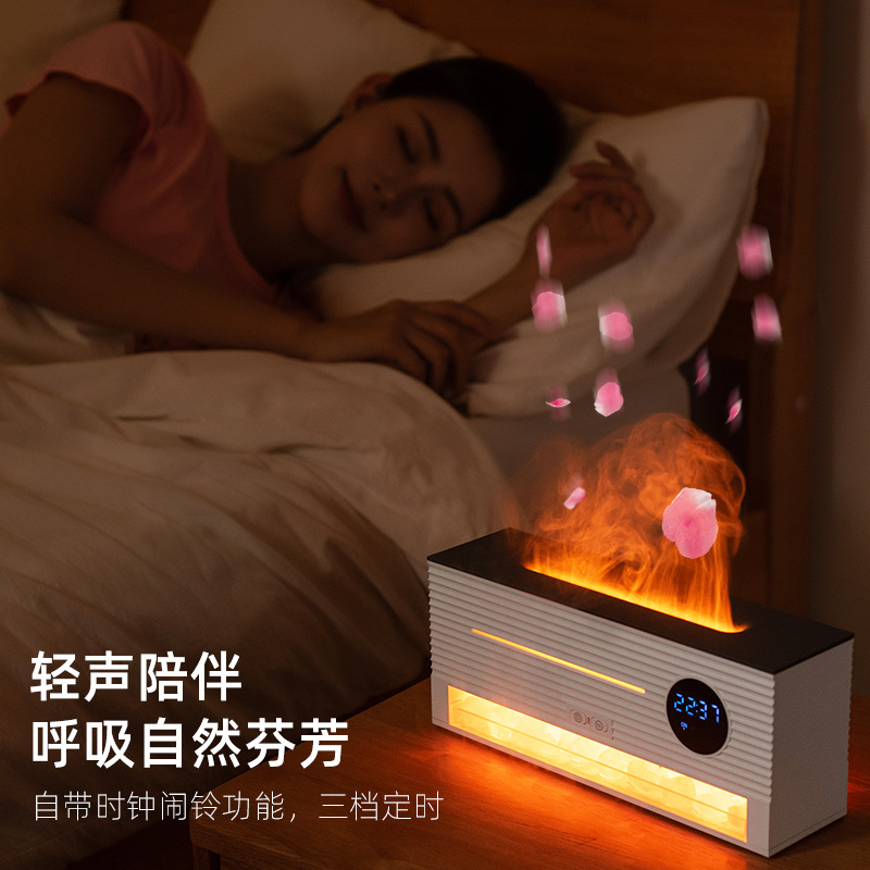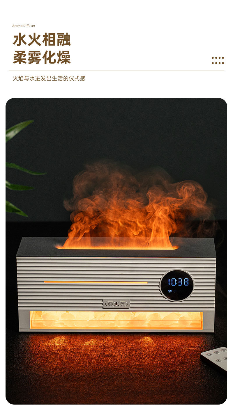 跨境遥控仿真火焰岩石闹钟加湿器家用办公室静音超声波精油香薰机
