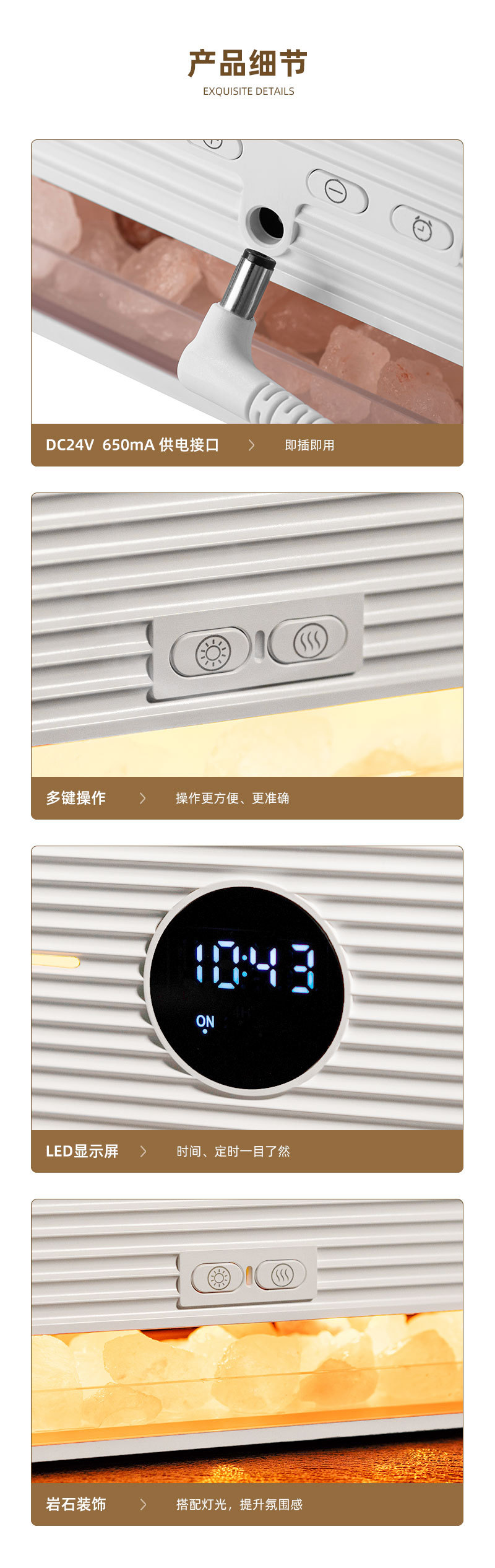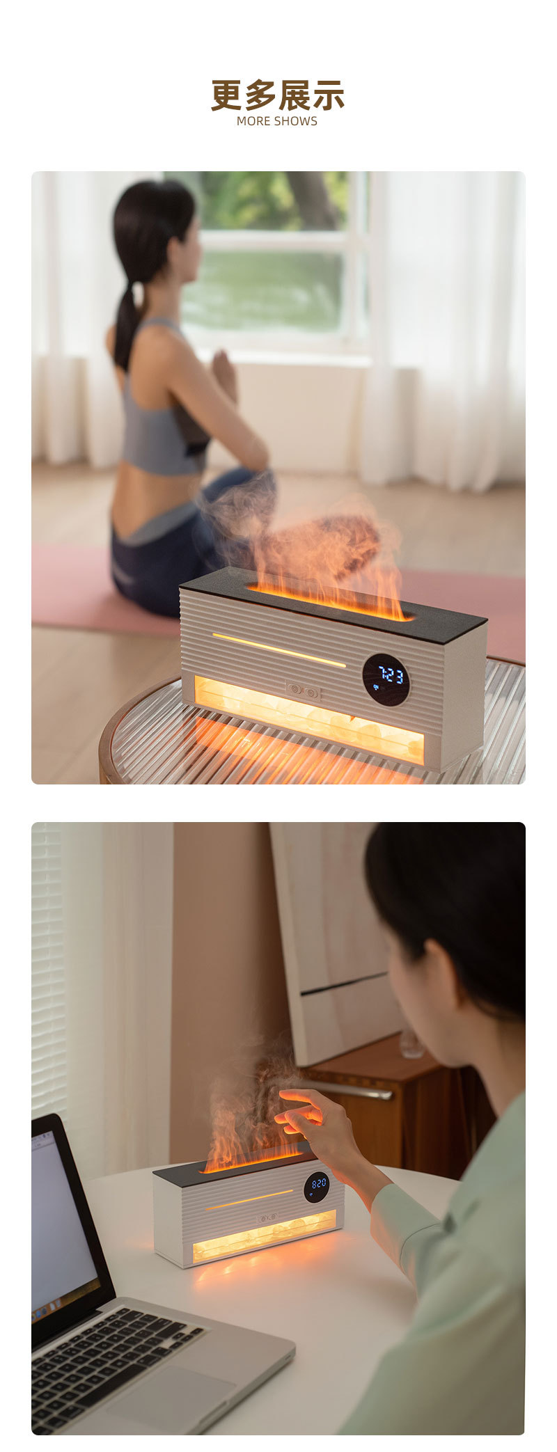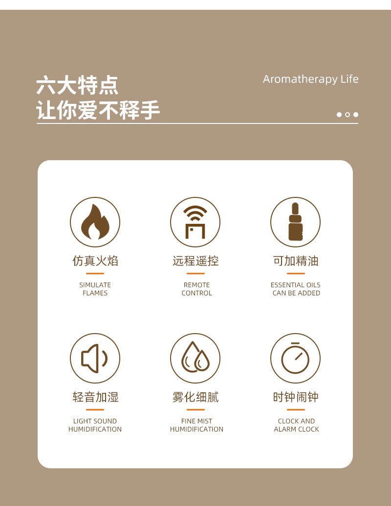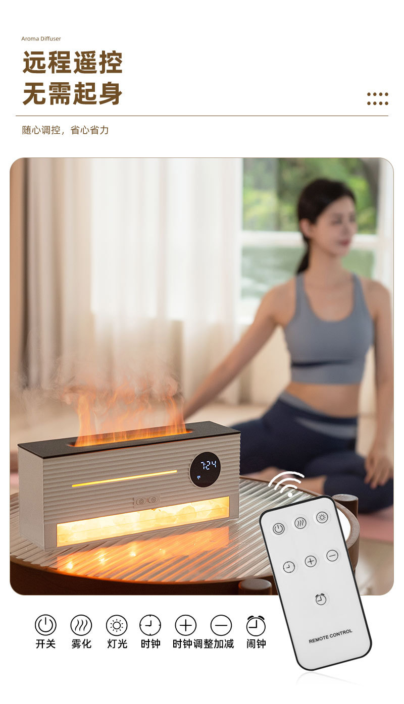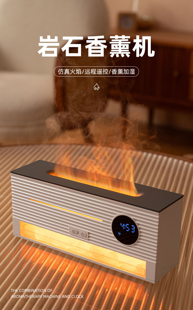 跨境遥控仿真火焰岩石闹钟加湿器家用办公室静音超声波精油香薰机 English | 投诉