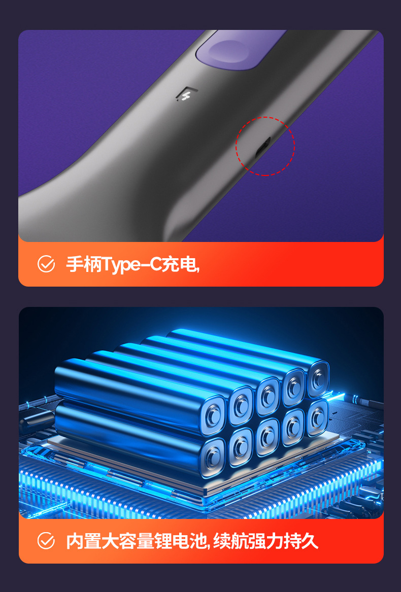 产品配置:充电线/底座/伸缩杆/说明书