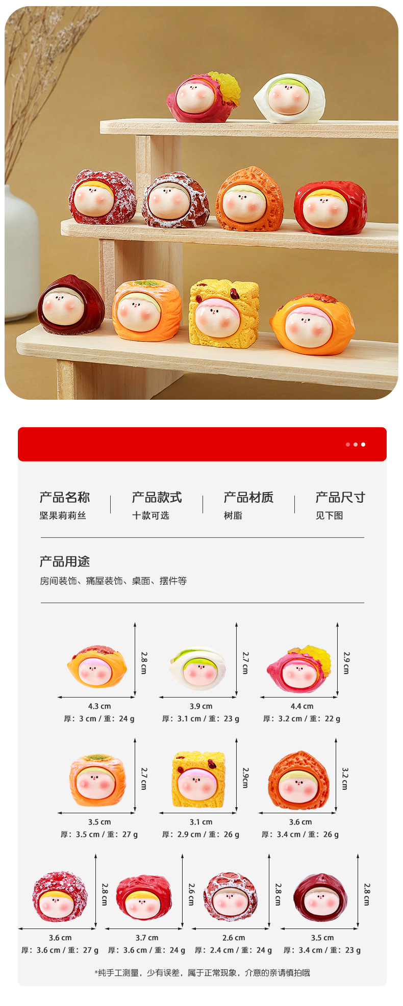 材质: 塑料/树脂 类别: 卡通 风格: 可爱风 品牌: 萌叙 包装: PP袋独立包装 货号: Q00063 是否专利货源: 否 颜色: 年货李四-【10款/套】单个价 是否属于礼品: 是,个人礼品 是否IP授权: 否 1: 萌粒公仔 2: 钥匙扣小配件 3: 直播盲盒 重量: 0.402 kg/件