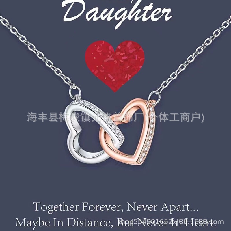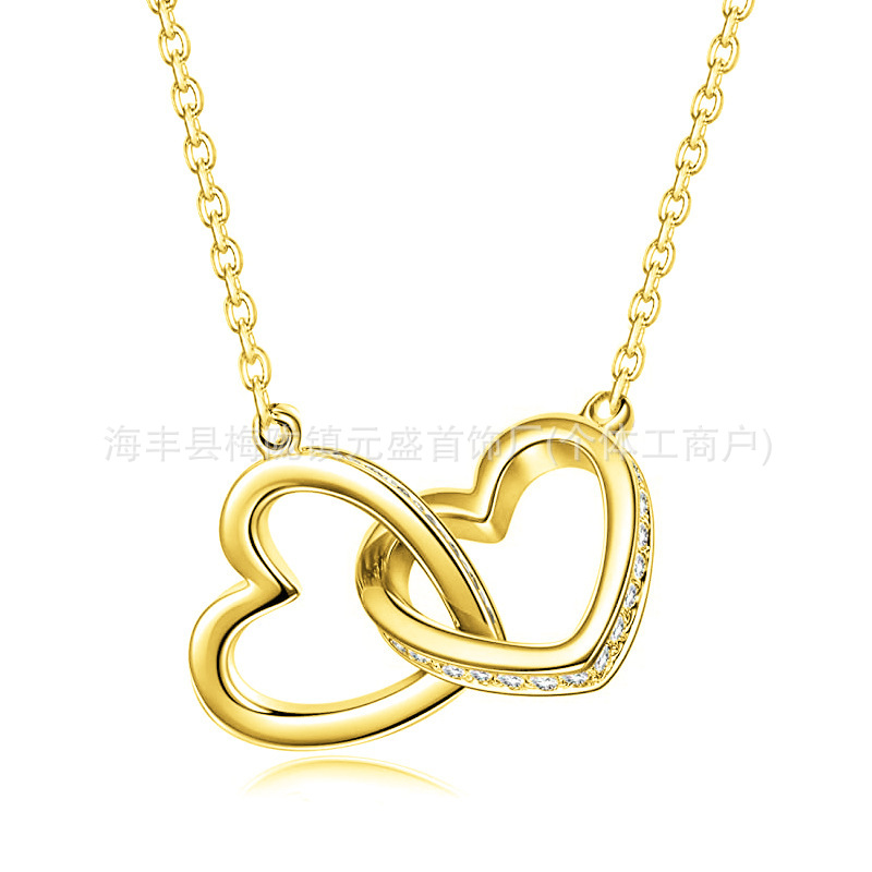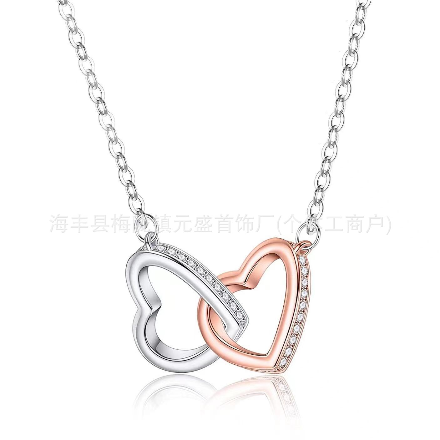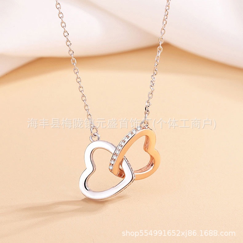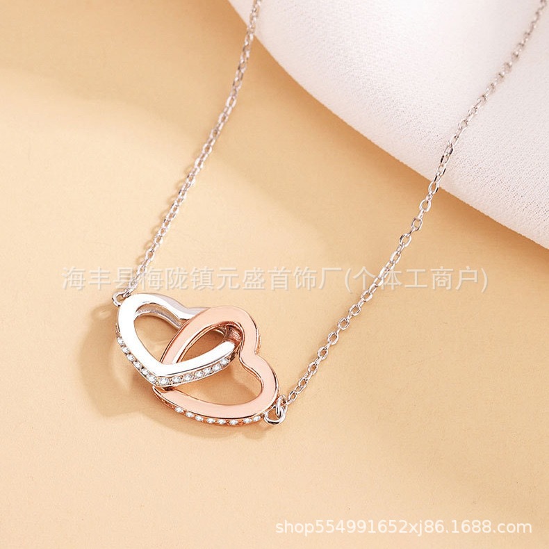 跨境s925银分色双心项链女士心心相扣银吊坠爱心欧美时尚吊坠项链 English | 投诉