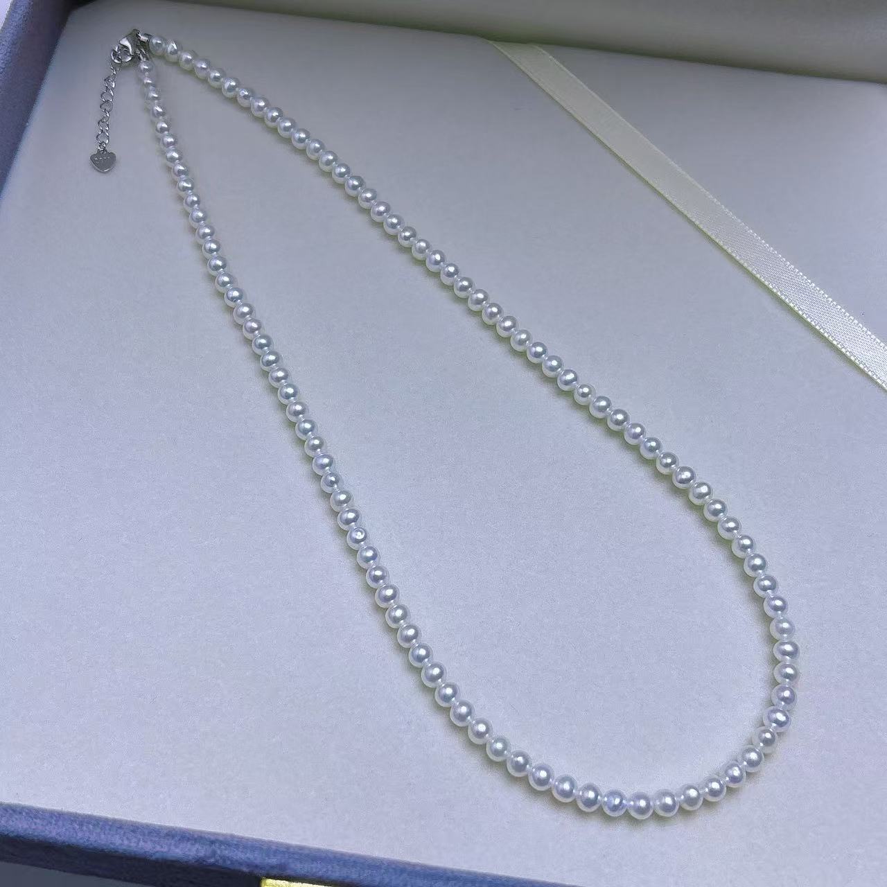 4-5mm淡水baby链珍珠项链近圆强光微瑕S925银可调节尾链天然