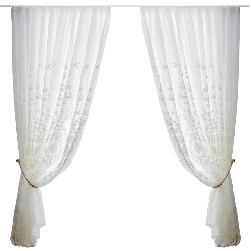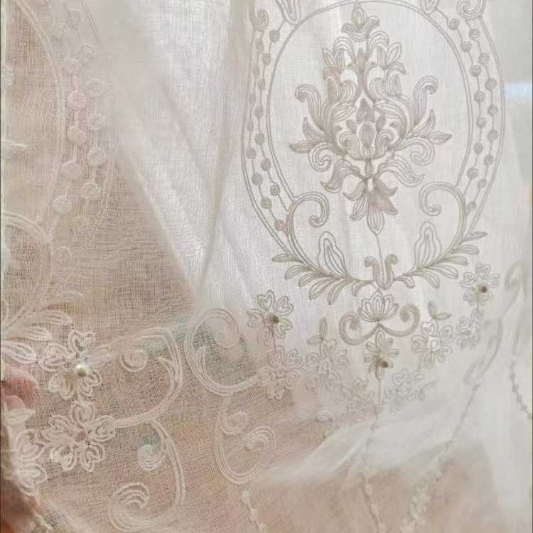 ? ? ?“绣花窗帘纱轻奢小美式欧式高档白纱帘窗纱客厅卧室钉珍珠纱帘阳台”