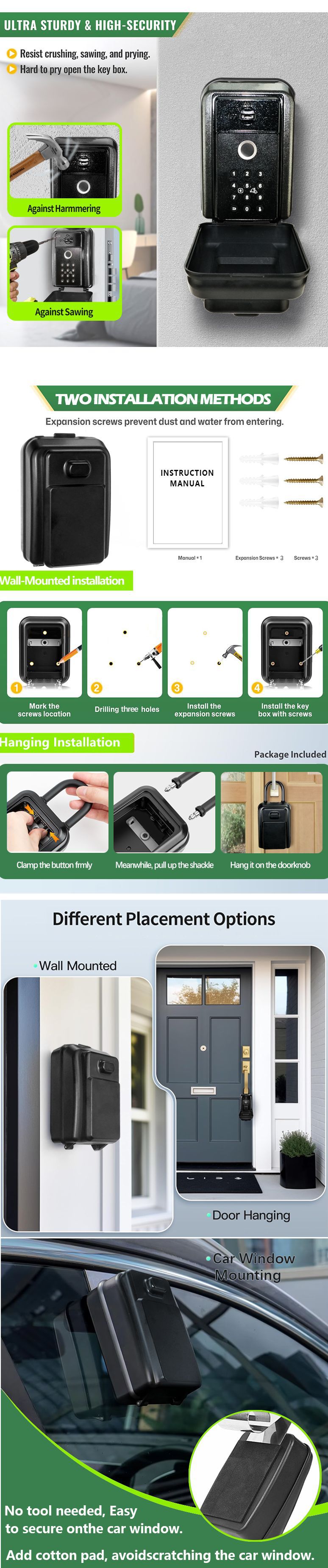 TUYA带门磁钥匙盒 TTLock无门磁钥匙盒 智能钥匙盒是否关好检测 可选TUYA或TTLock版本 实体按键指纹钥匙箱 硅胶按键户外钥匙盒 支持门磁报警钥匙箱 工程用双版本钥匙盒