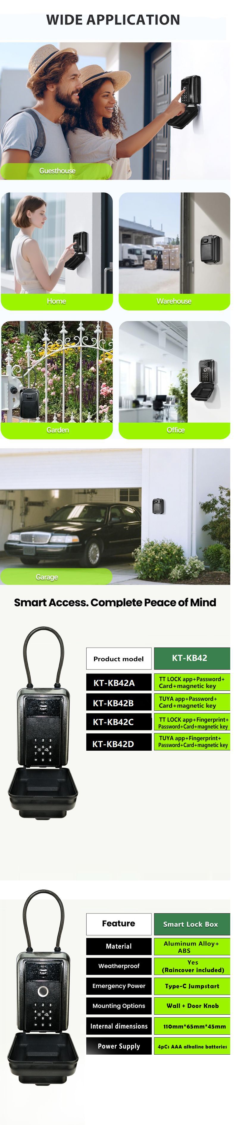 【TUYA版带门磁|TTLock版可选】KOTONLINK KT-KB53 智能指纹钥匙盒 实体硅胶按键 防水IP65 支持检测是否关好门 APP远程控制 批发/OEM