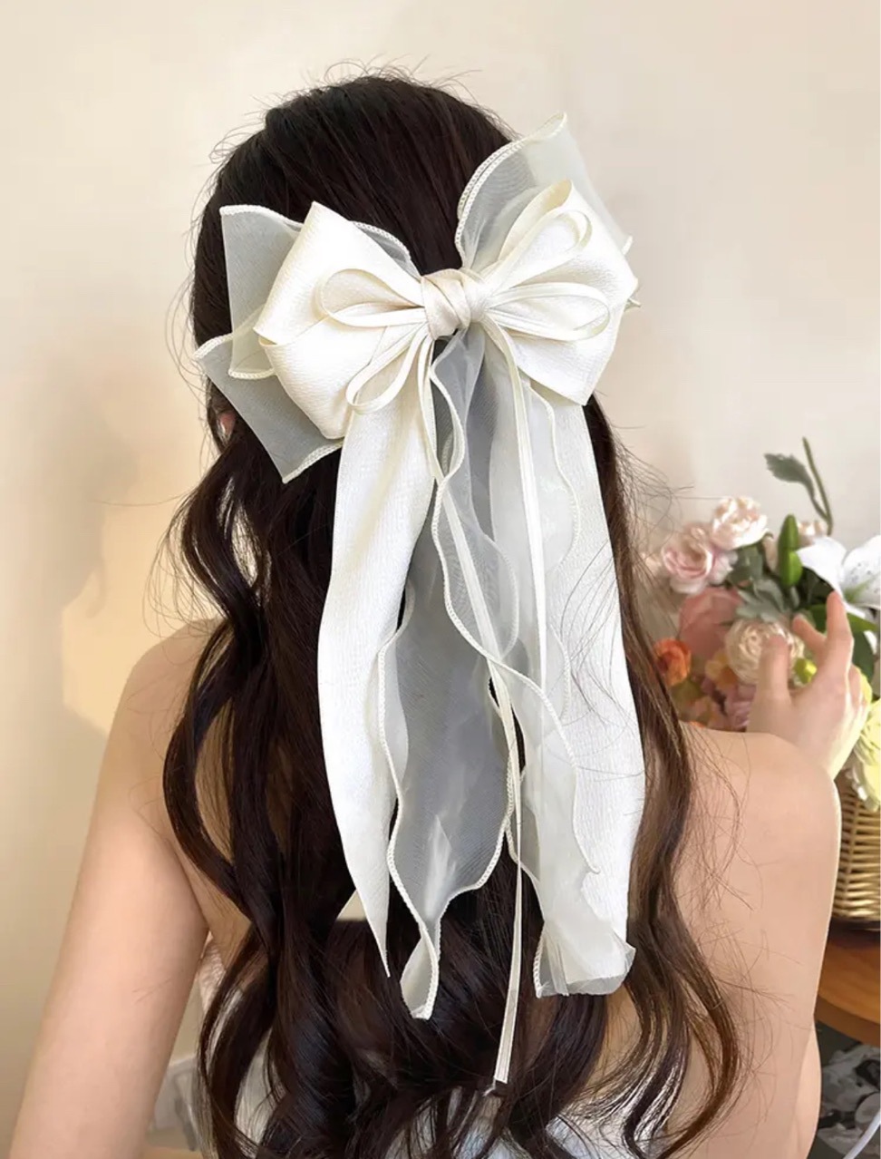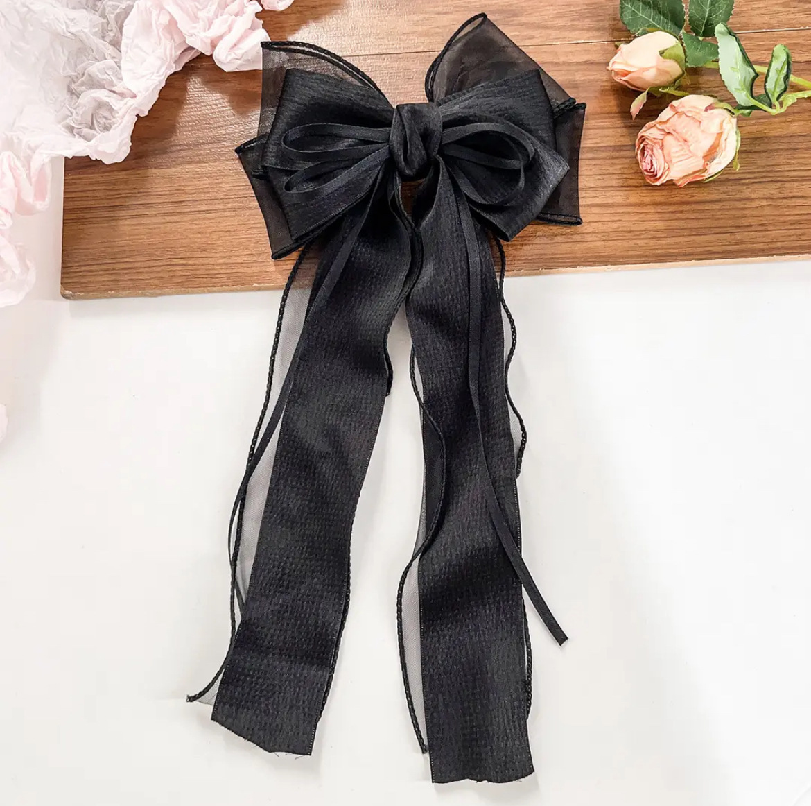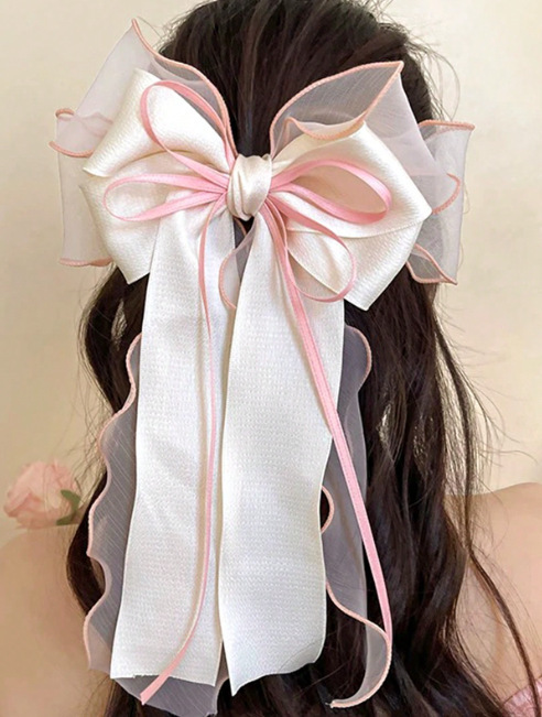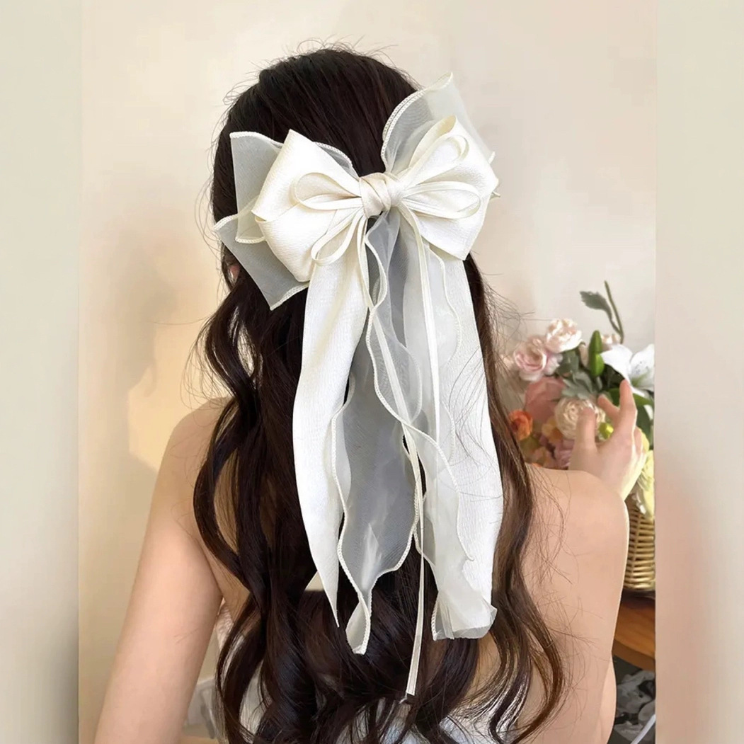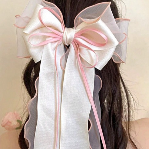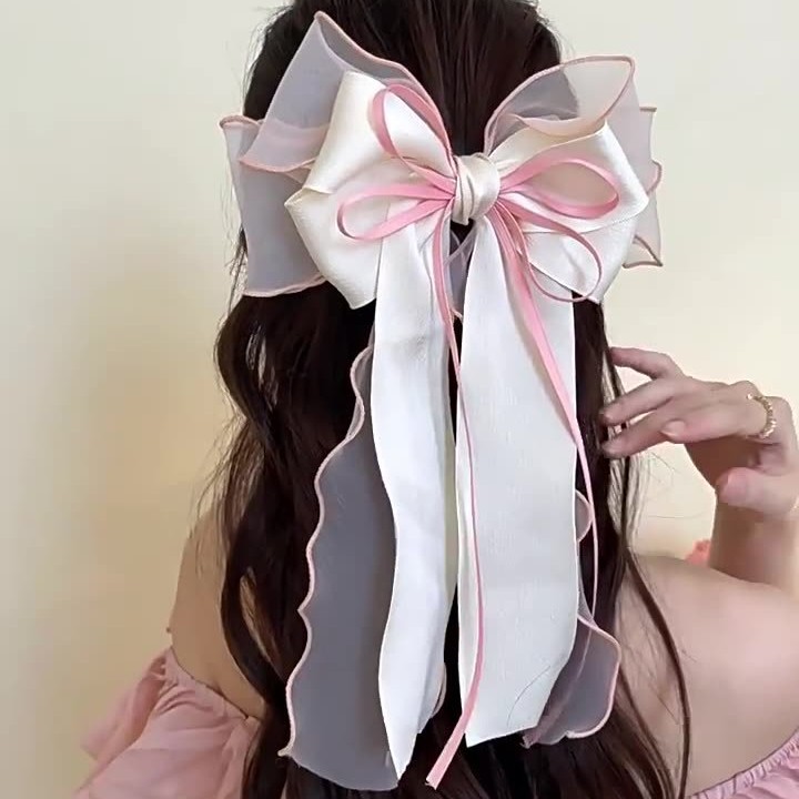 新款丝带蝴蝶结发夹时尚高级感女弹簧夹后脑勺气质布料发饰飘带批 English | 投诉