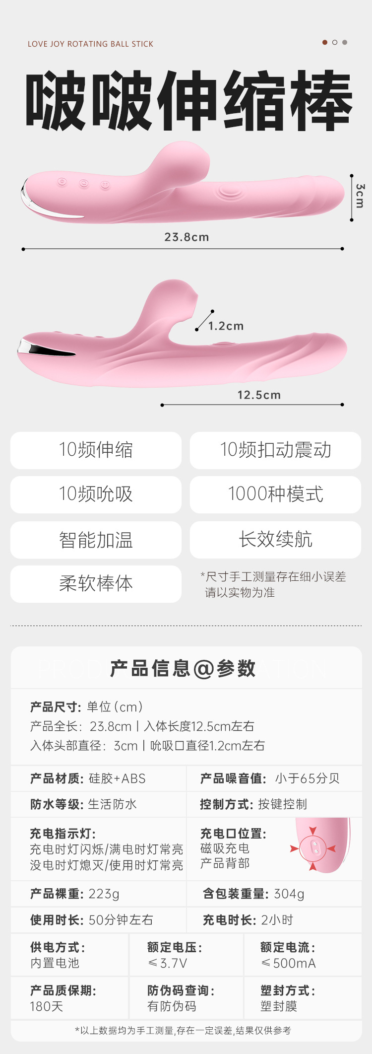 产品尺寸(cm)全长23.8,入体长度12.5,直径3.0,吮吸口直径1.2
