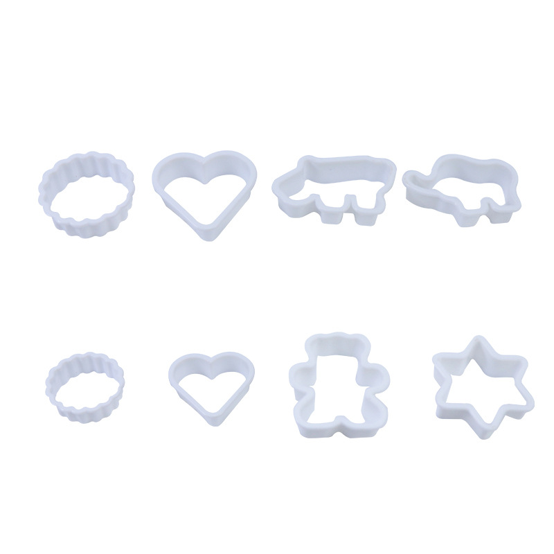 说 明:小熊、小象、犀牛、六角星、爱心大号小号、花边圆圈大号小号,共8个款式。