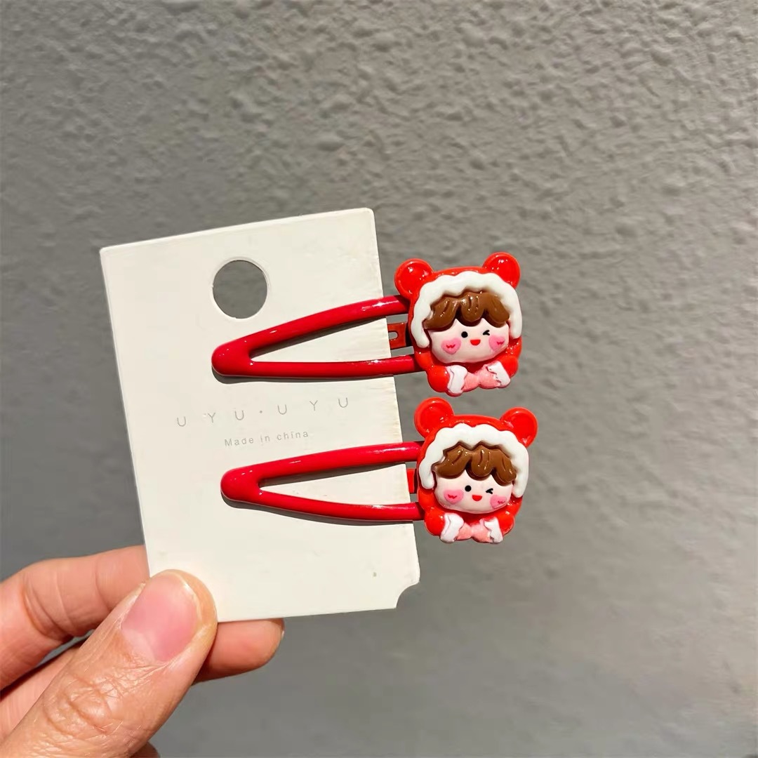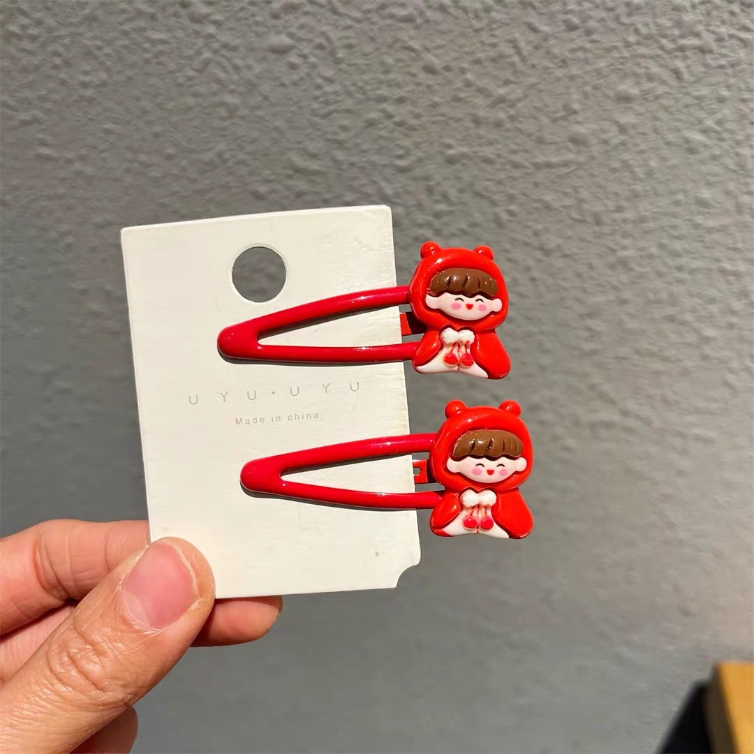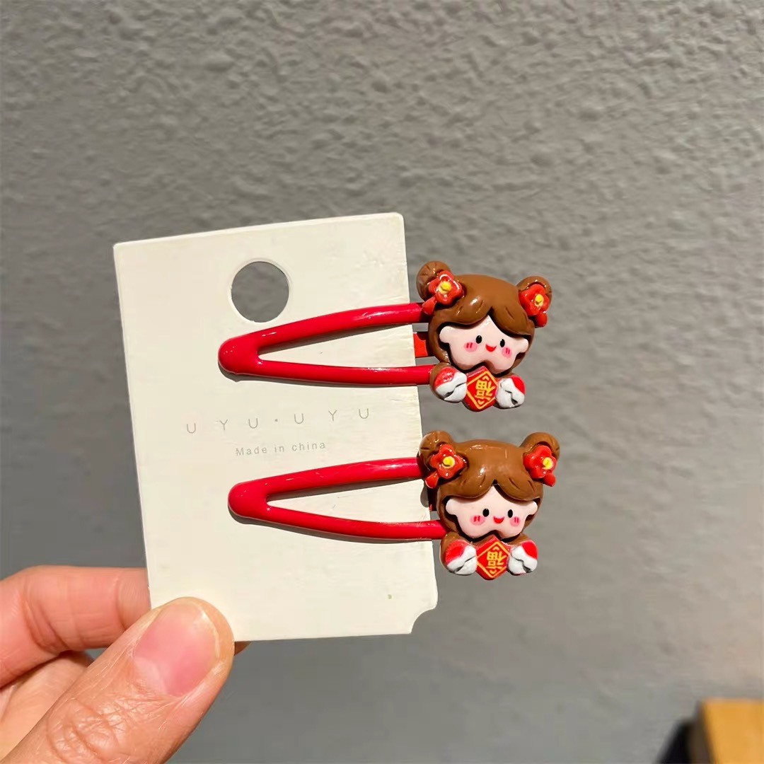 新年红色小女孩bb发夹卡通侧边碎发夹马尾扎头儿童发绳发圈发卡女 English | 投诉