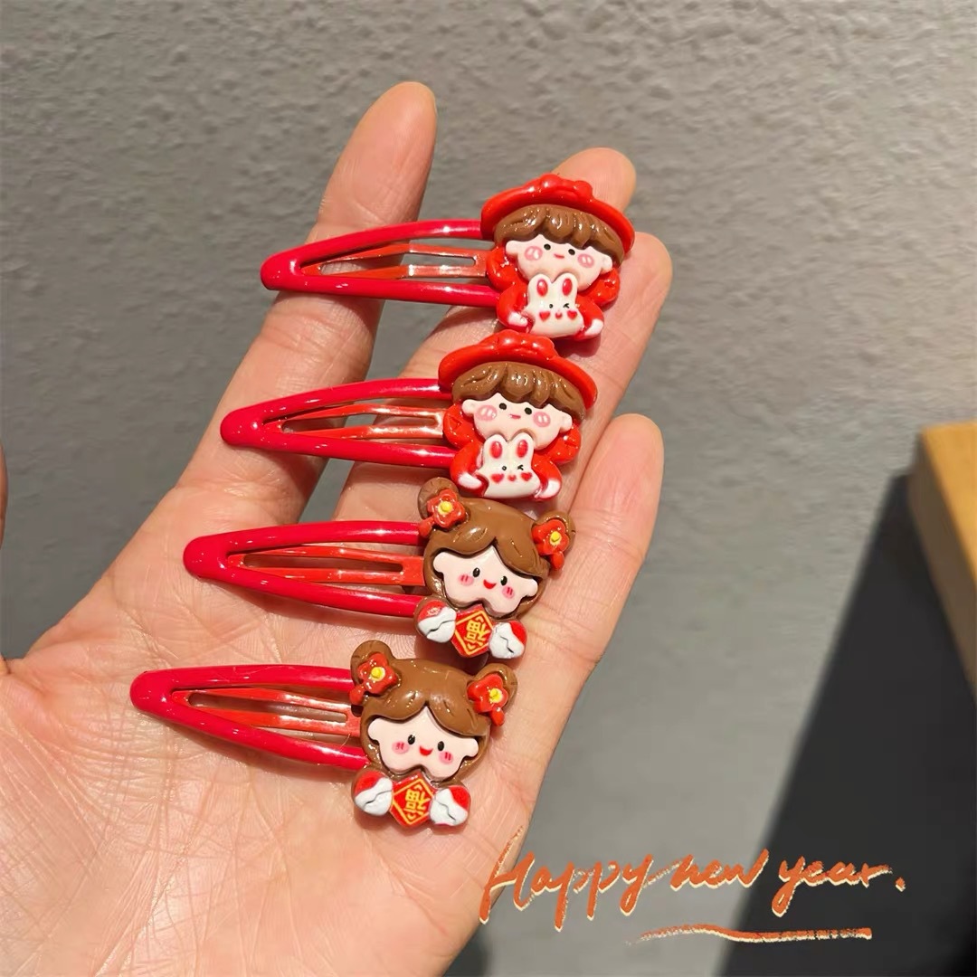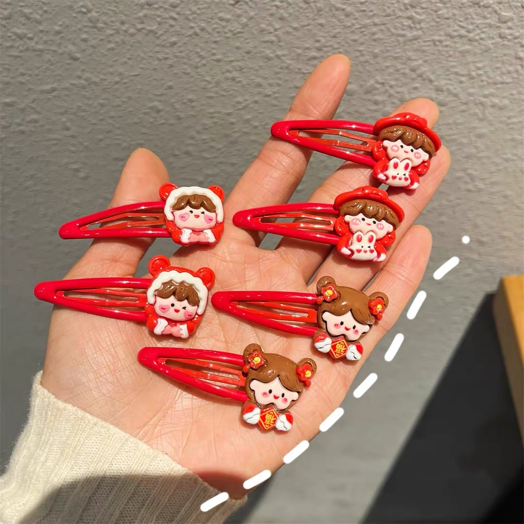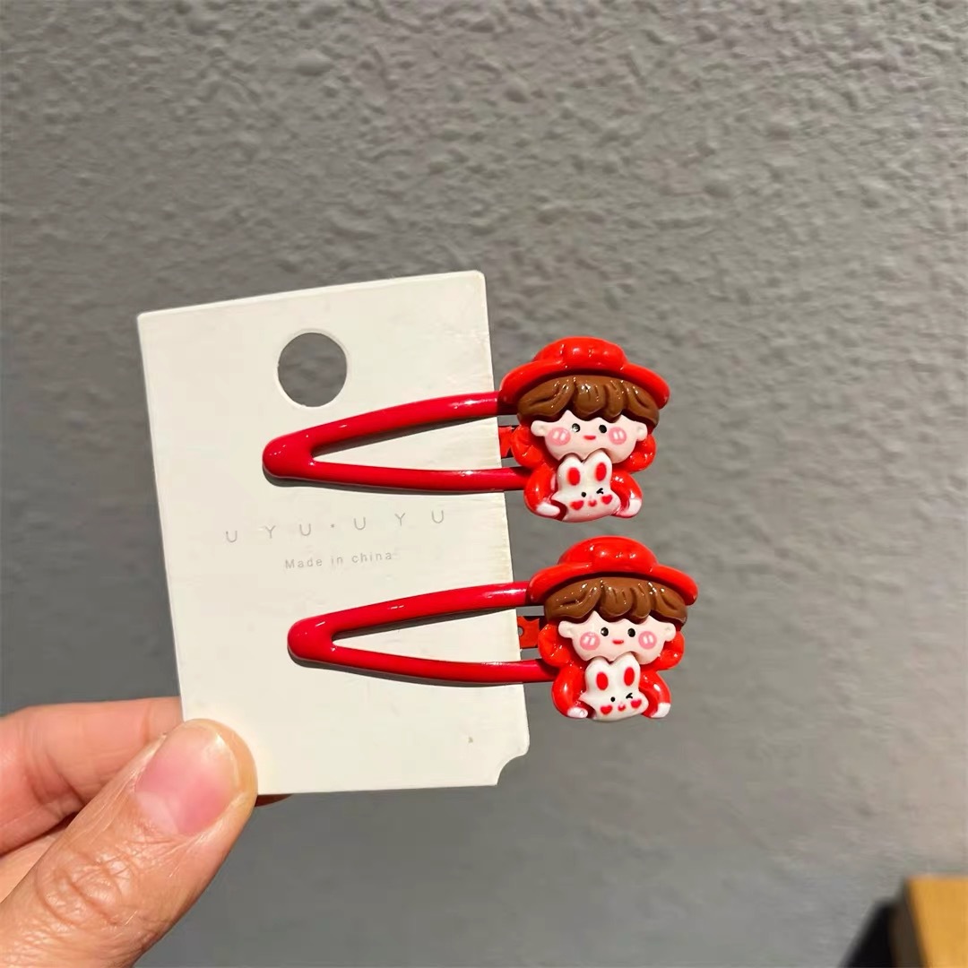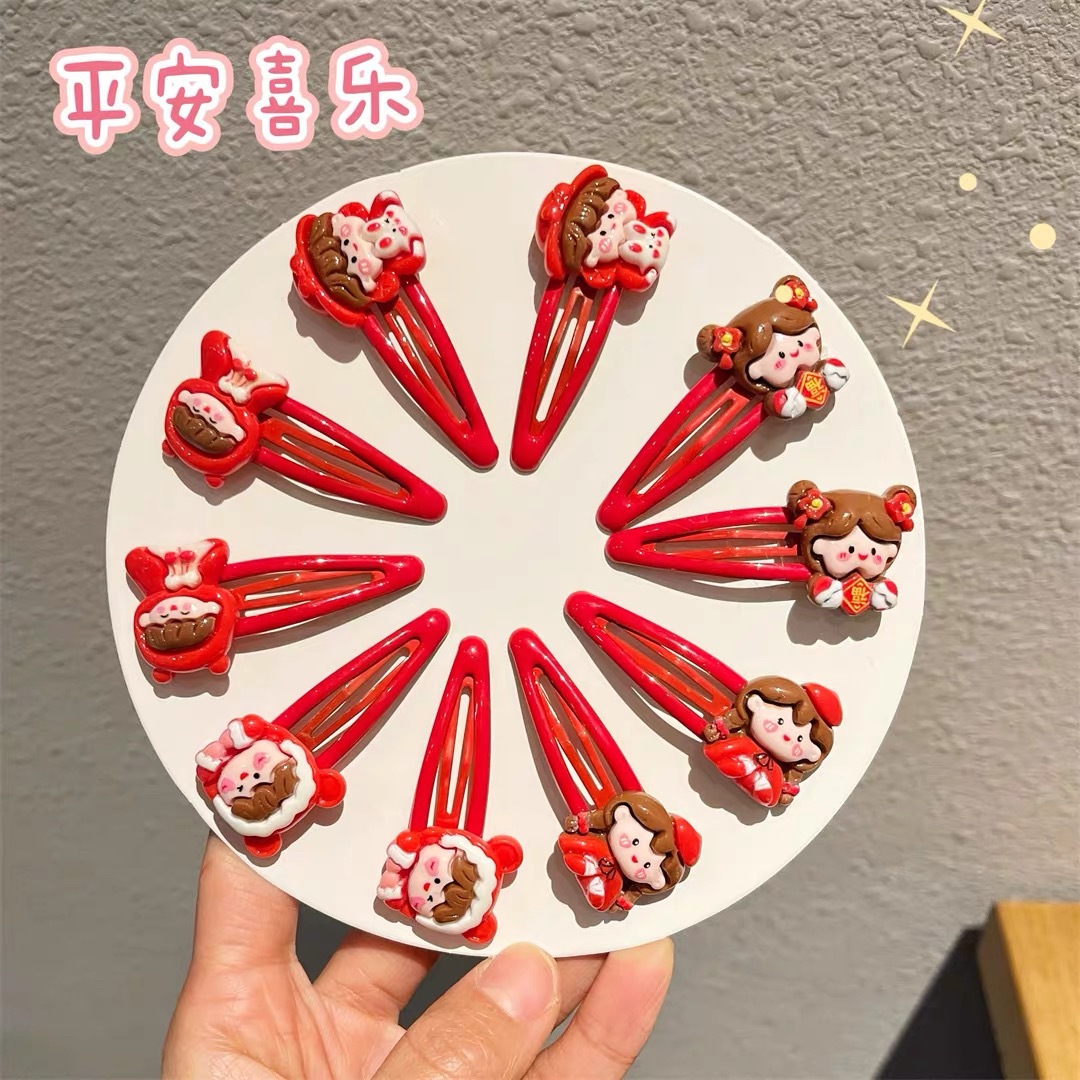 新年红色小女孩bb发夹卡通侧边碎发夹马尾扎头儿童发绳发圈发卡女 English | 投诉