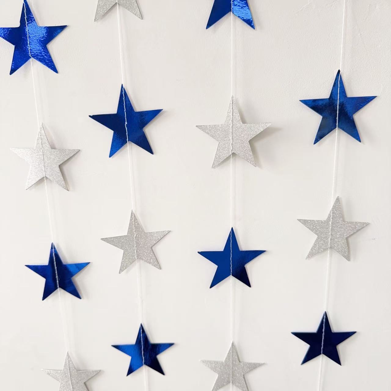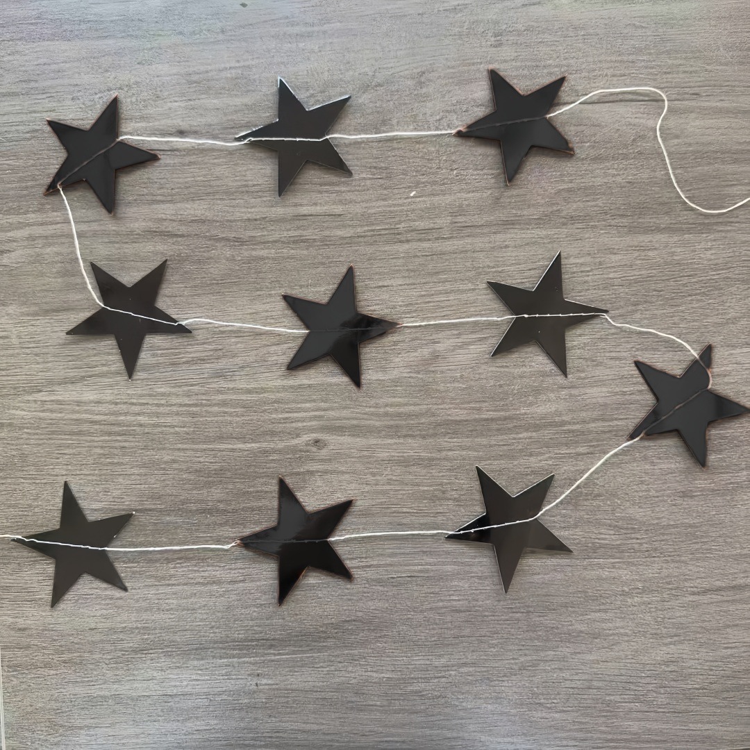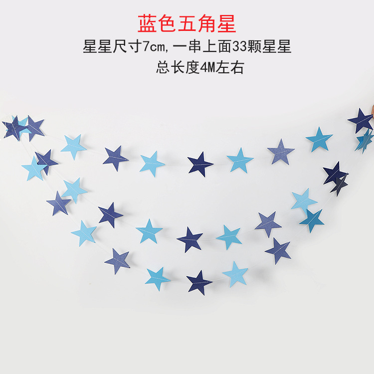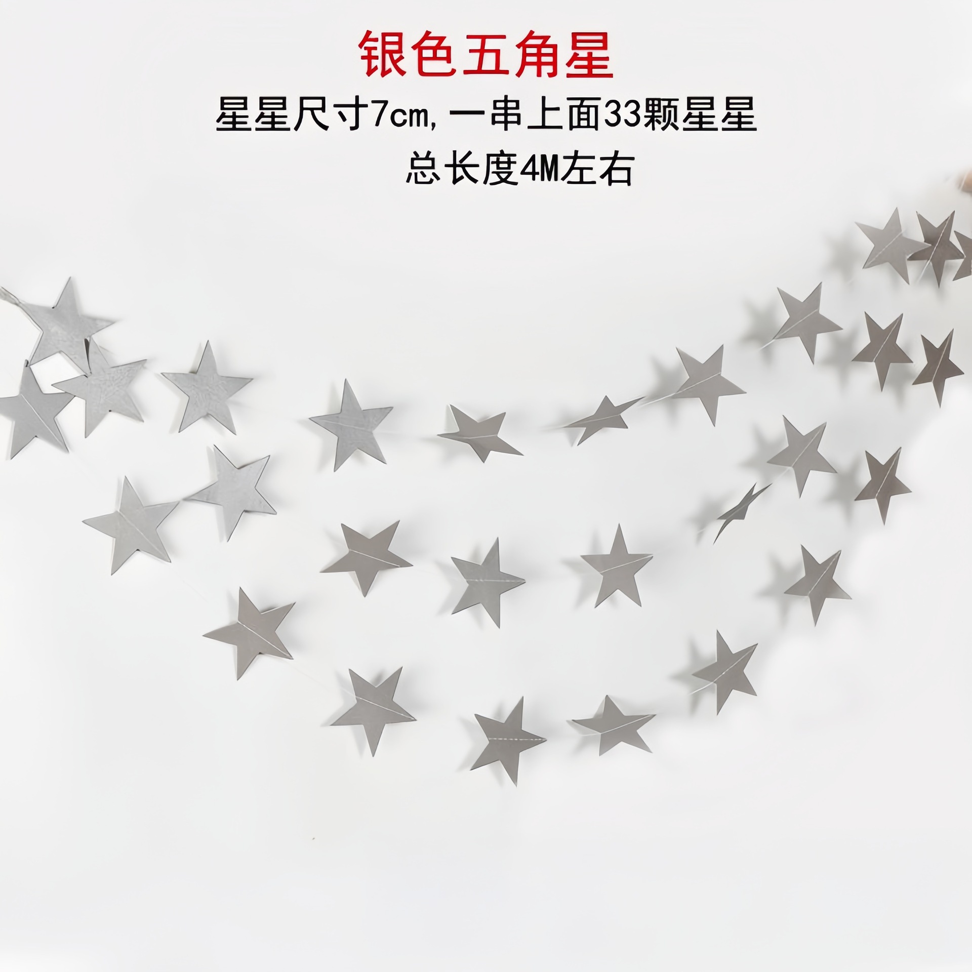 尺寸:五角星尺寸为7cm,长度为2.5m,一条上面有22个五星。