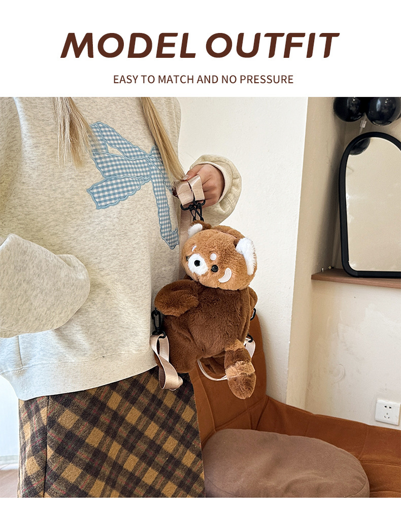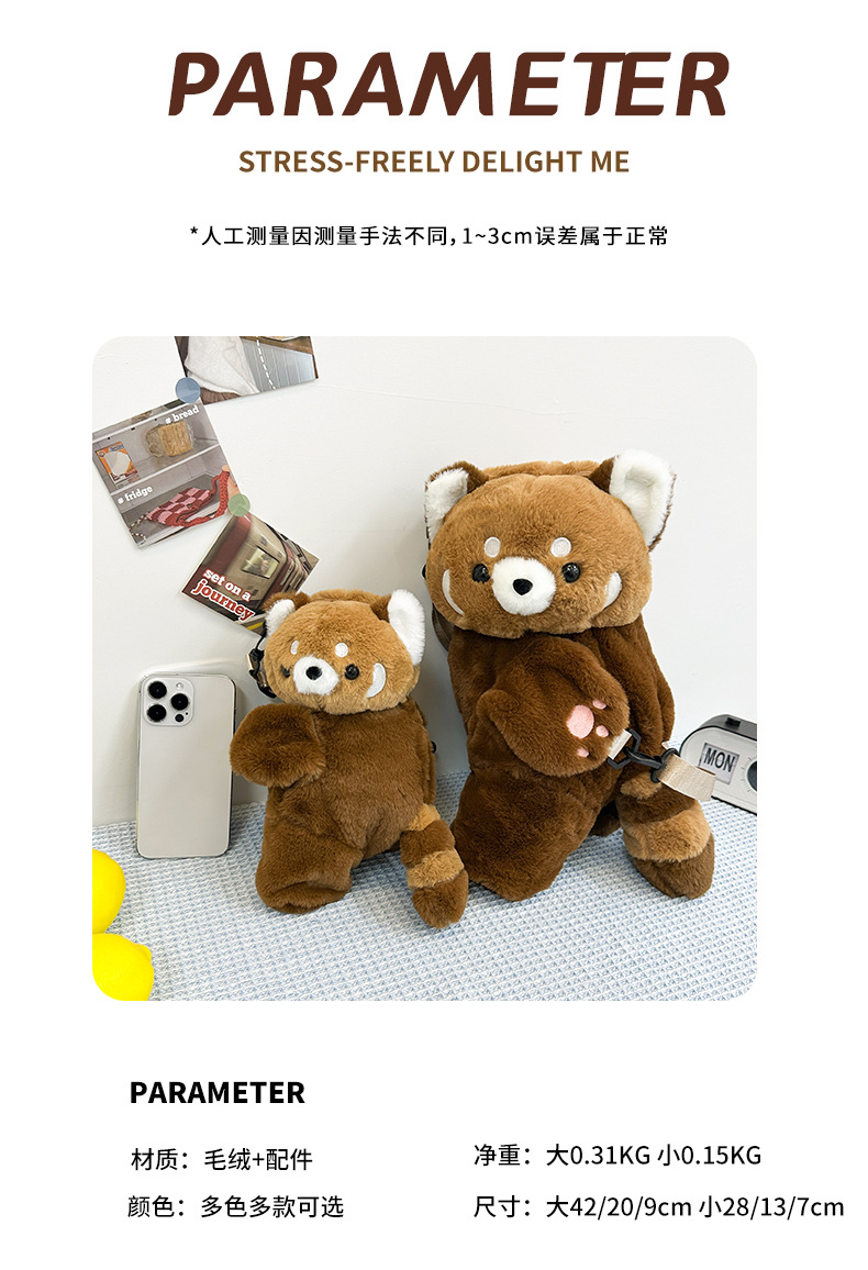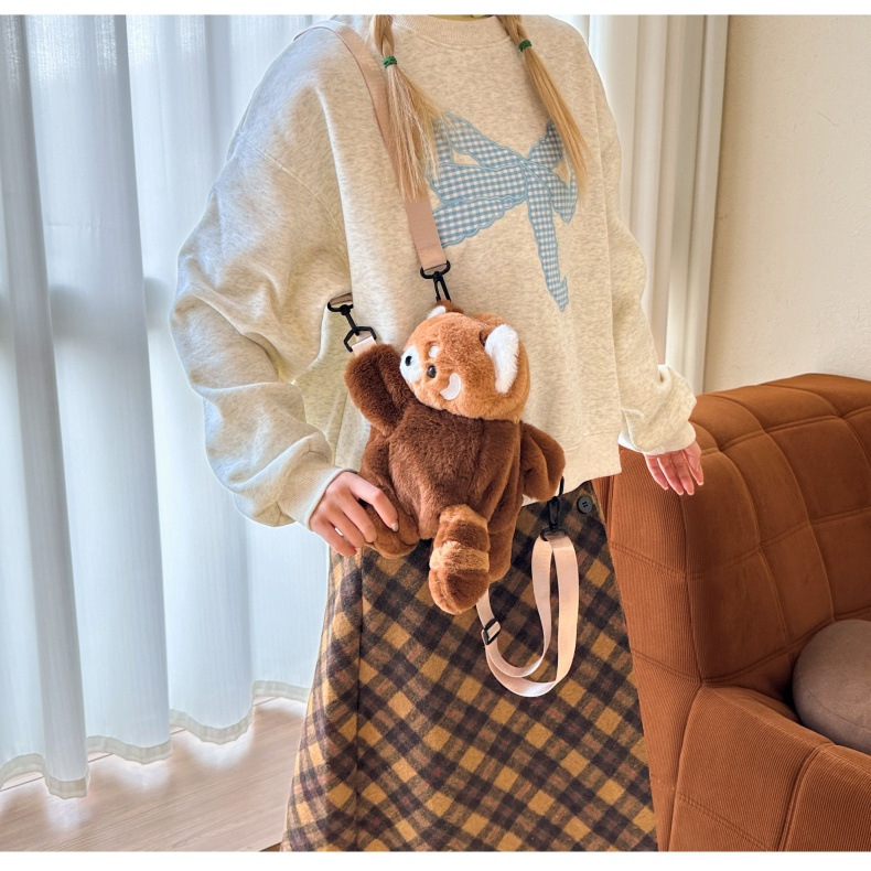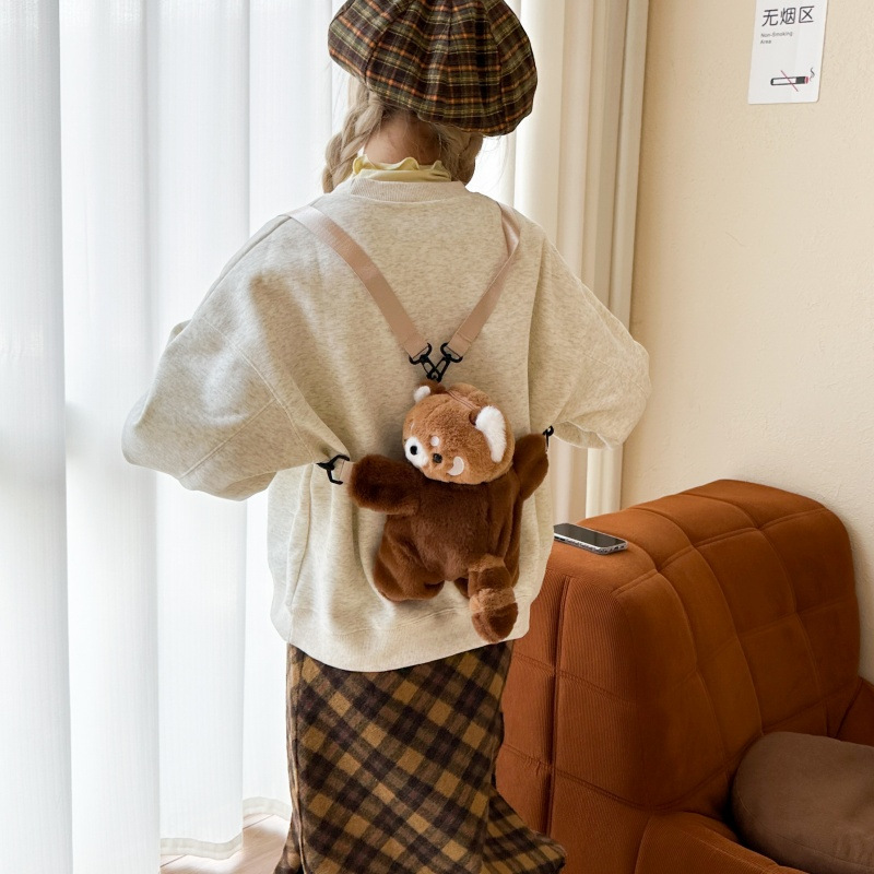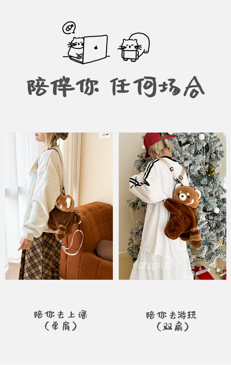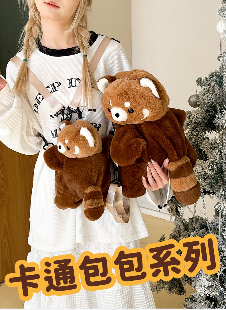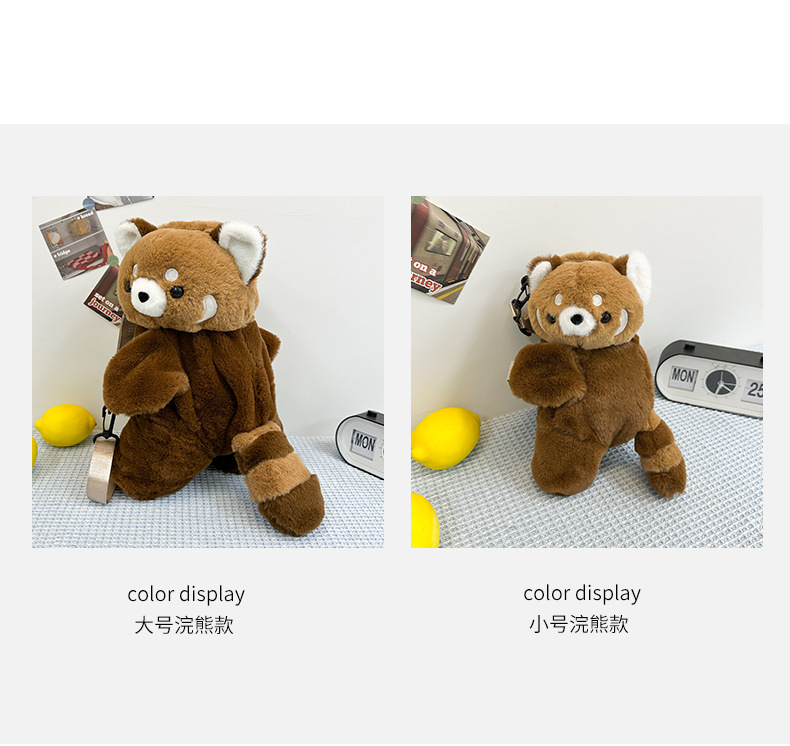 新款卡通小浣熊趴趴包可爱毛绒包包单双肩背包女玩偶包儿童斜挎包 English | 投诉