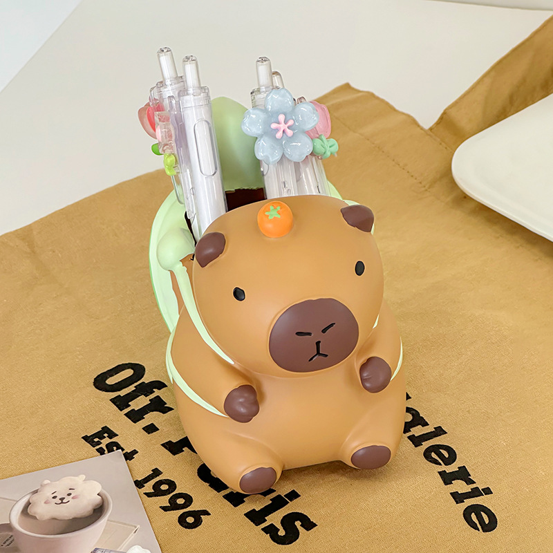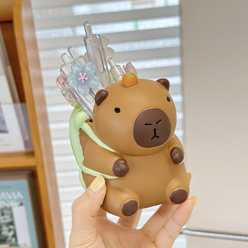创意卡皮巴拉笔筒学生办公桌面高级感多功能文具收纳盒装饰品摆件 English | 投诉