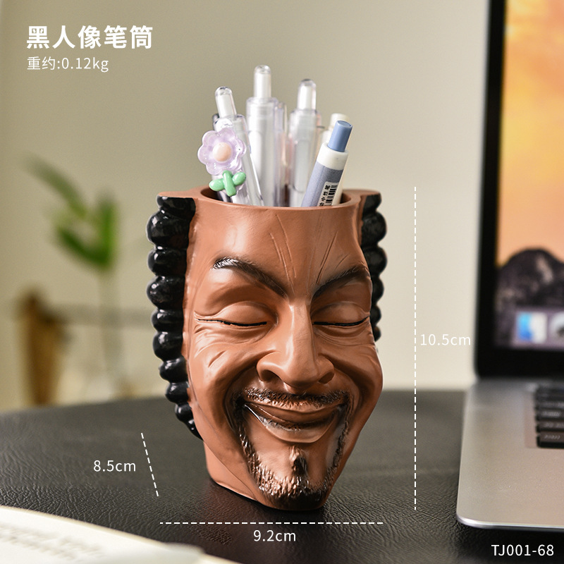 创意美式黑人人脸个性多肉盆栽办公室家居桌面多功能收纳笔筒装饰 English | 投诉